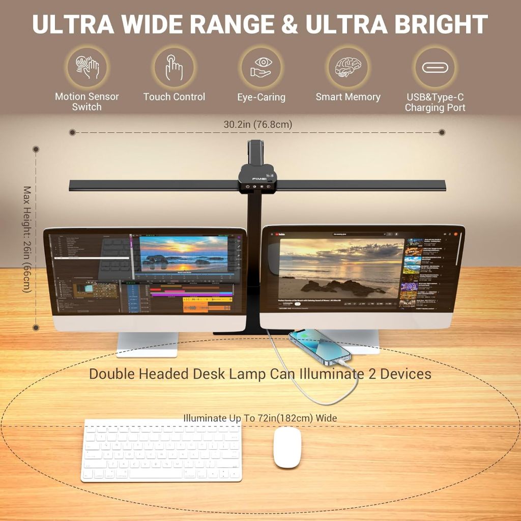 80CM 2-in-1 LED Desk Lamp 24W Ultra Bright Tall Architect Desk LampTable Lamp for Home Office