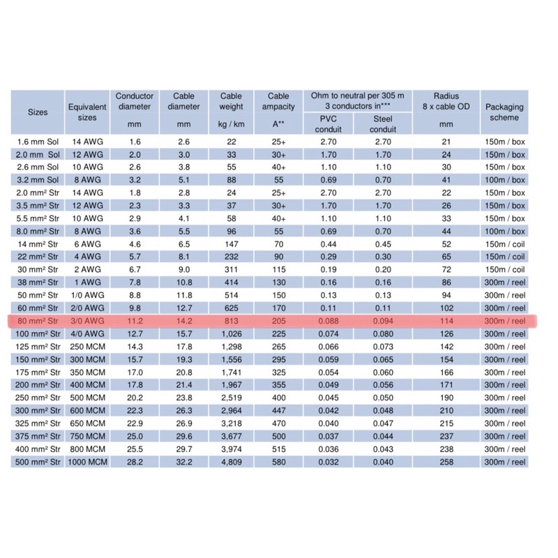 80mm2 - AWG #3/0 Phelps Dodge THHN/THWN-2 Stranded (PER METER)