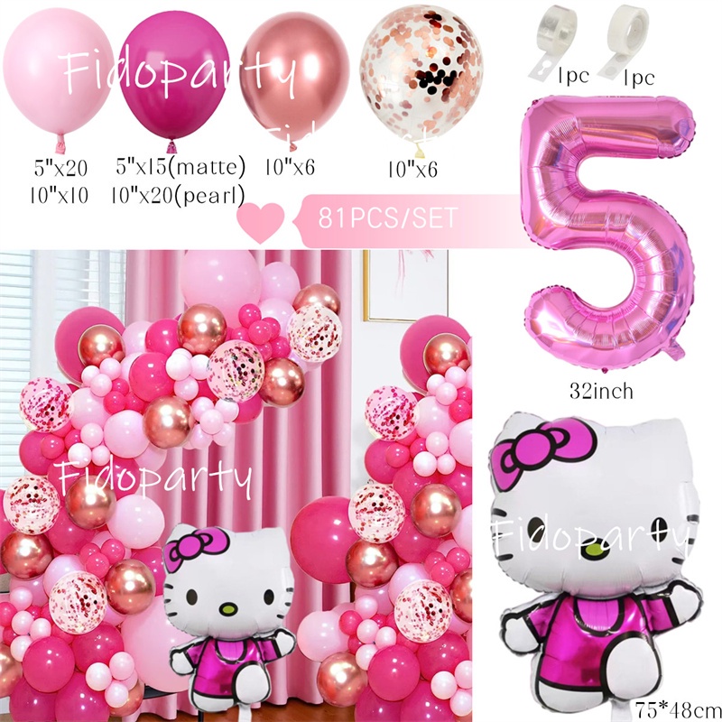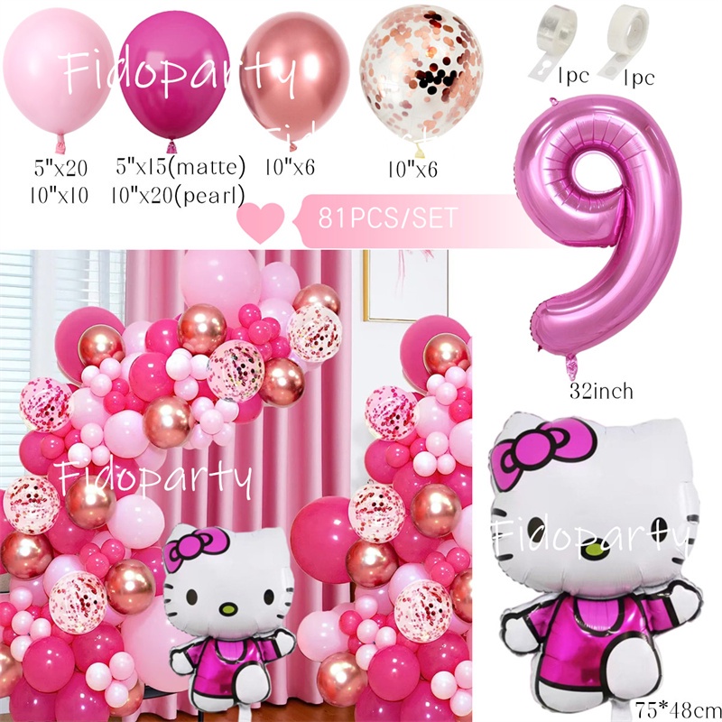 80pcs 81pcs Hello Kitty Balloon Garland Arch Kit 32inch Pink Number Balloon For Girl's Birthday Balloons Party Decorations