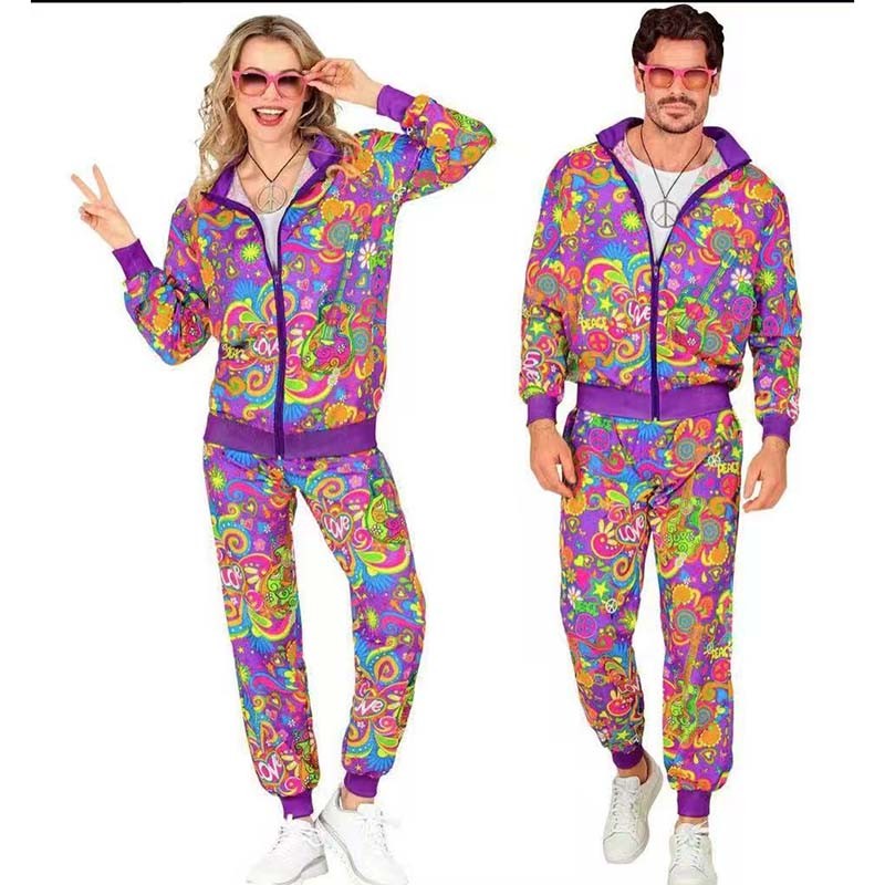 80s disco tracksuit jacket and pants jogging suit retro-style carnival-themed party cosplay costumes