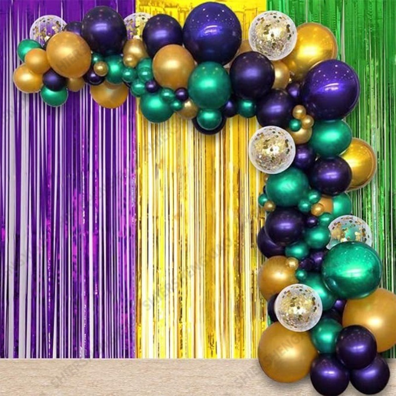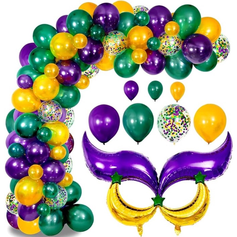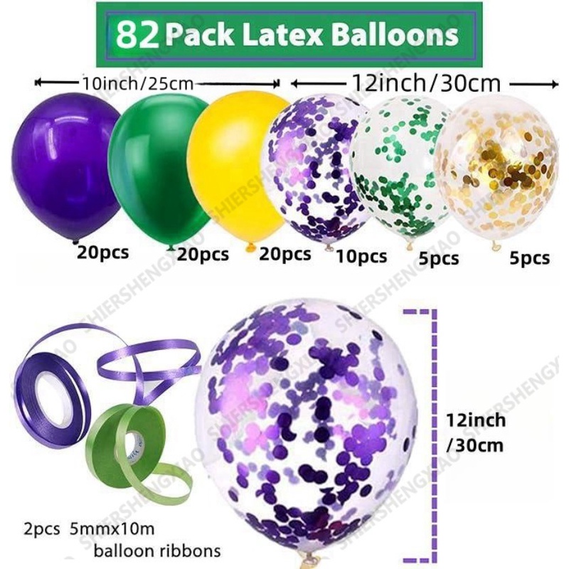 82pcs/117pcs Carnival Theme Balloon Decoration Set with Purple Green Gold Balloons, Colorful Confetti Balloons for Carnival, Retro Parties, Little Mermaid Parties, Aladdin Partie