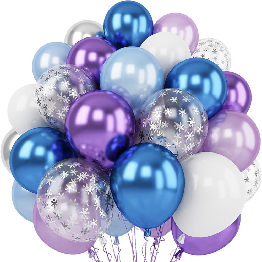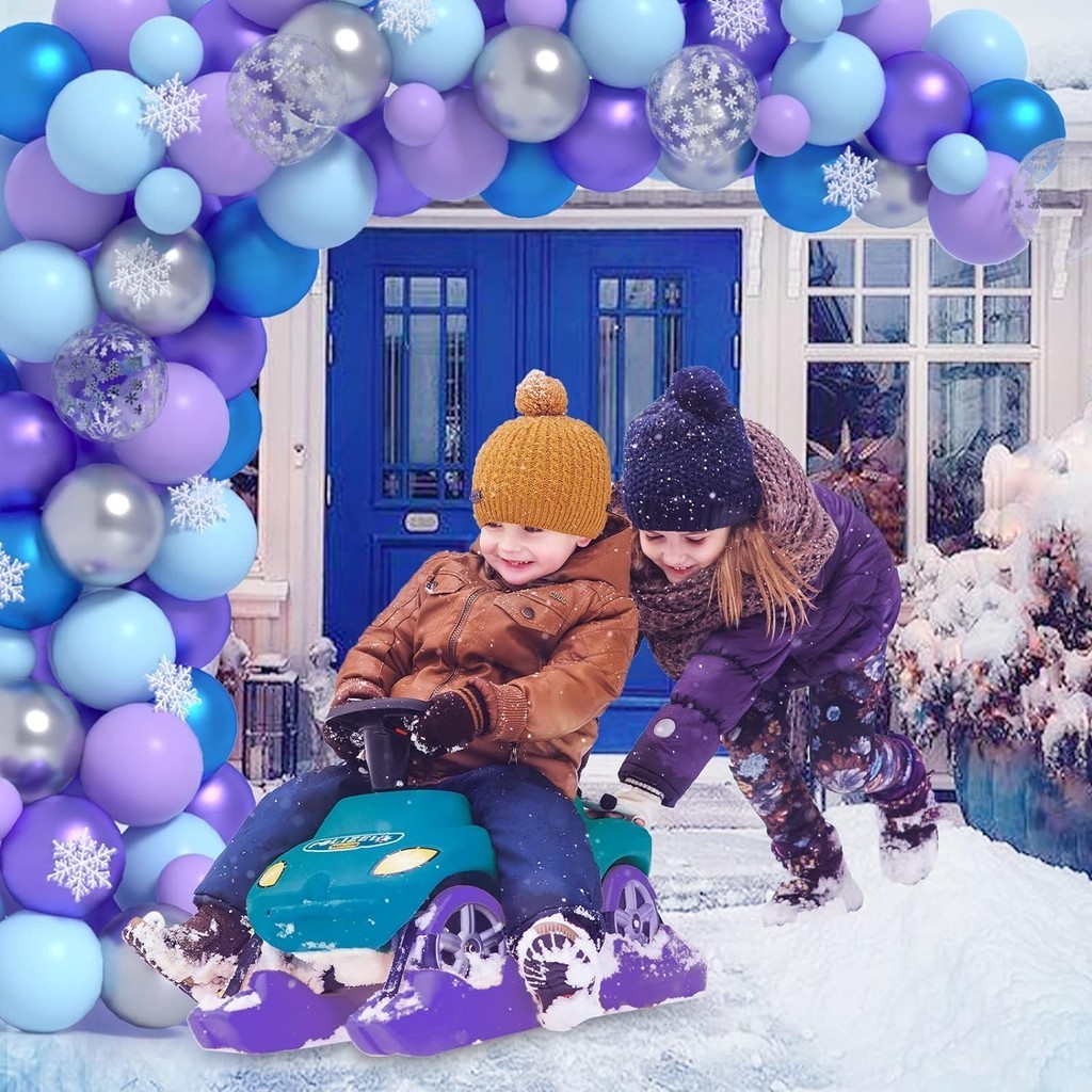 82pcs Frozen Theme Balloon Blue Purple Balloon Garland Arch Kit with Snowflake Latex and Frozen Elsa Foil Balloons for Winter girl princess Birthday Party Baby Shower Decoration