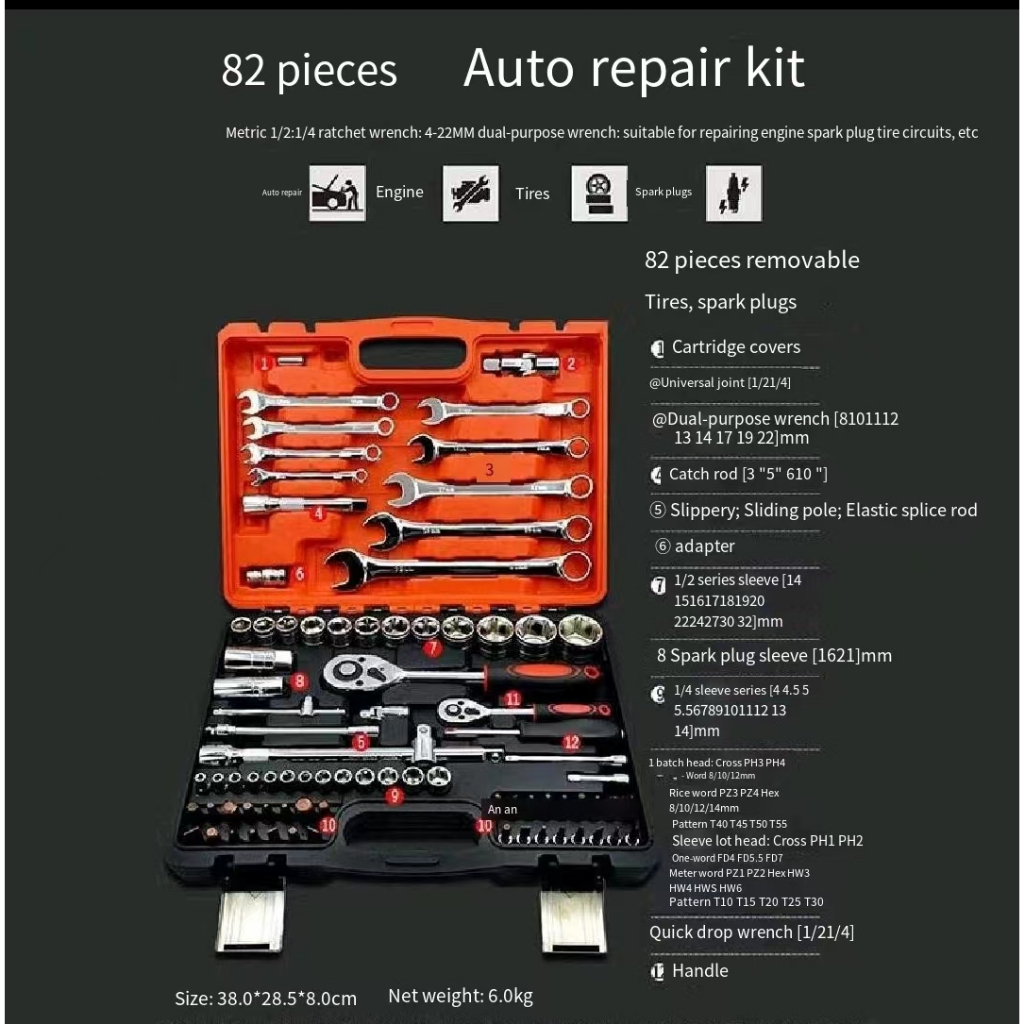 82pcs tools wrench set car multi-functional wrench car repair tool box set