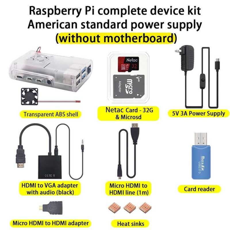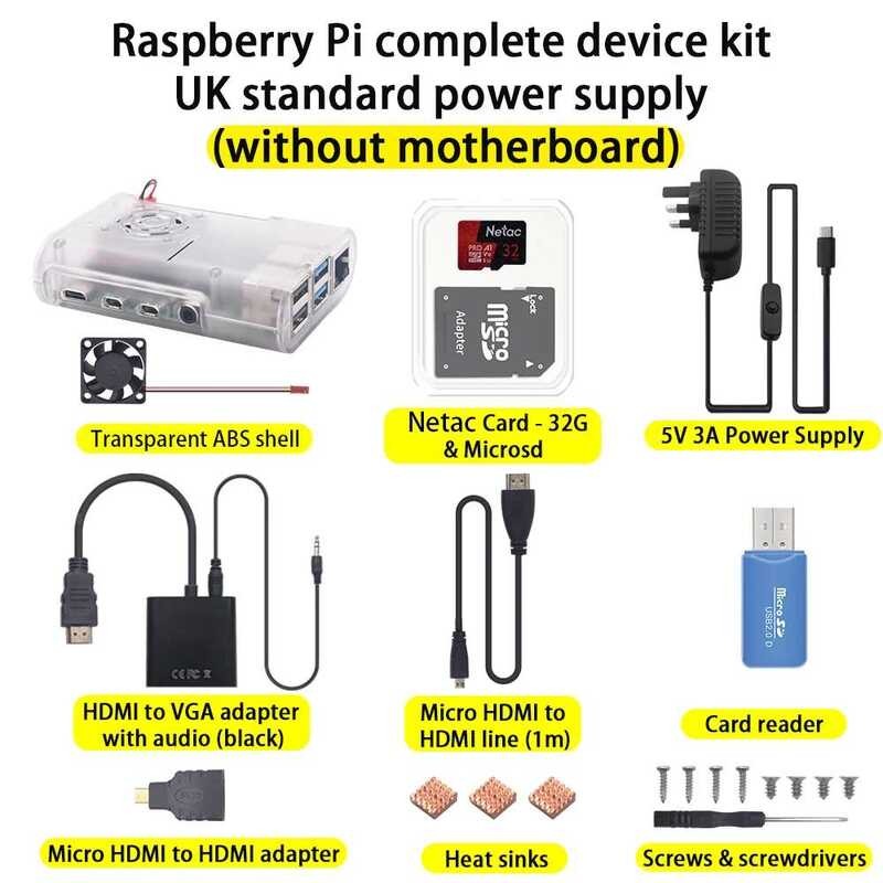 833 Original Raspberry Pi 4 Model B Kit+Abs Case+32Gb SD Card+Us EU UK AU Plug Power Adapter