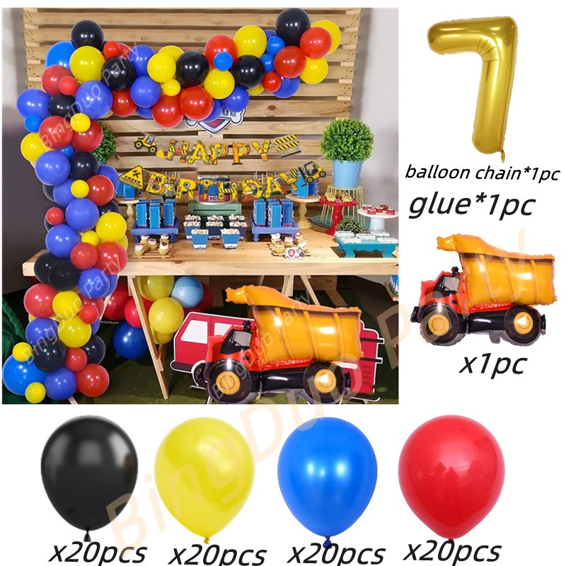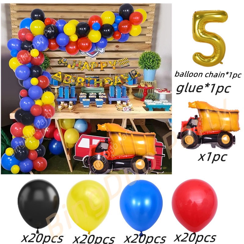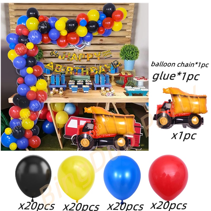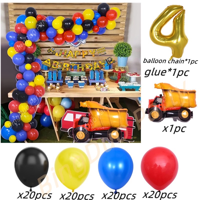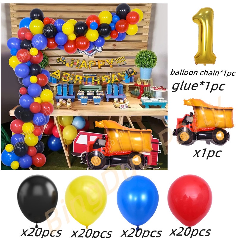 84pcs Construction Theme Party Decorations Balloons Set Large Engineering Vehicle Red Blue Yellow Balloons Party Supplies
