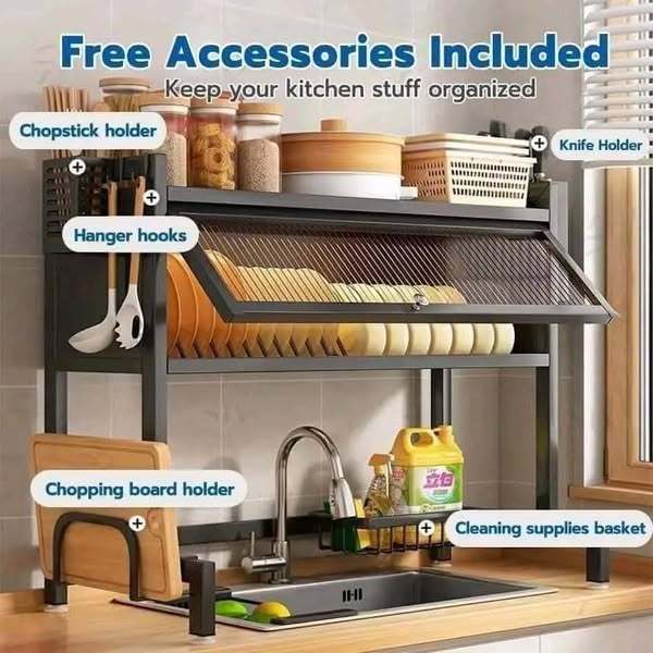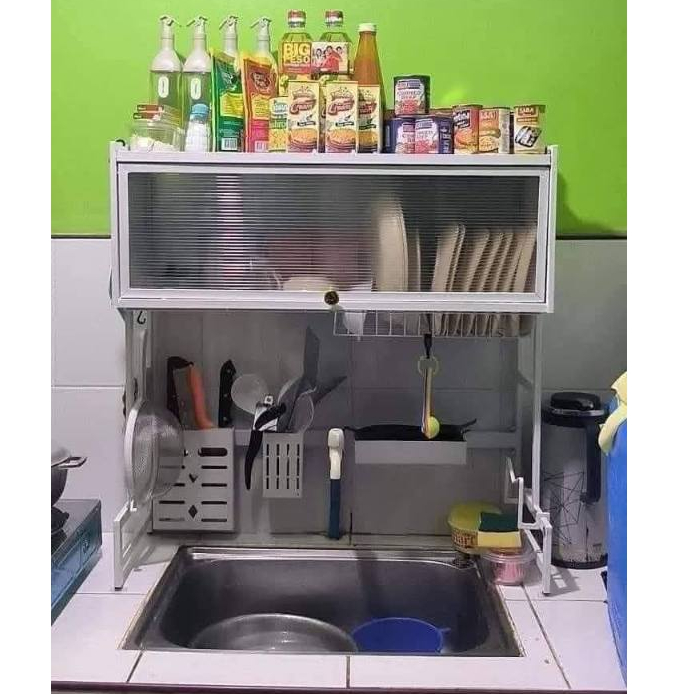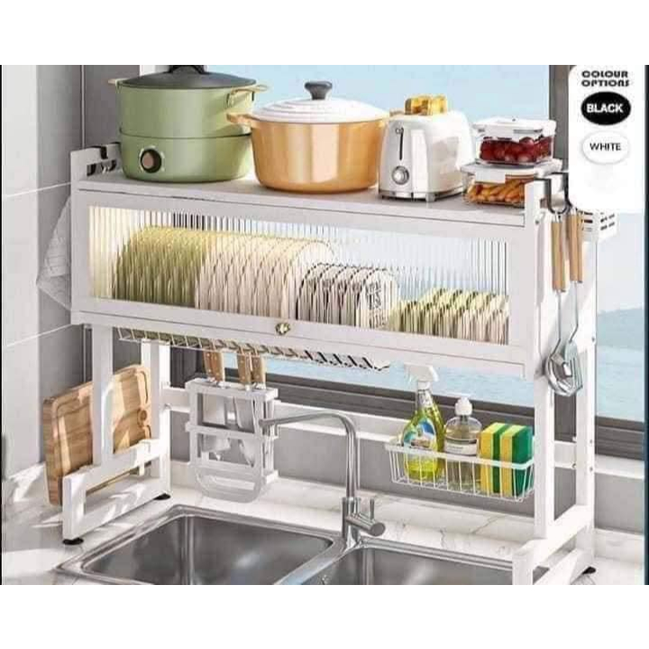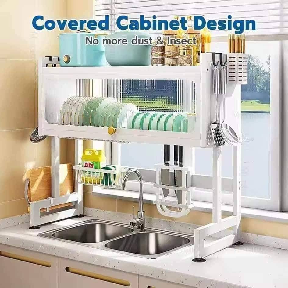 85cm Dish Rack Organizer with Cabinet Over Sink Drying Rack Storage Dustproof Kitchen Organizer