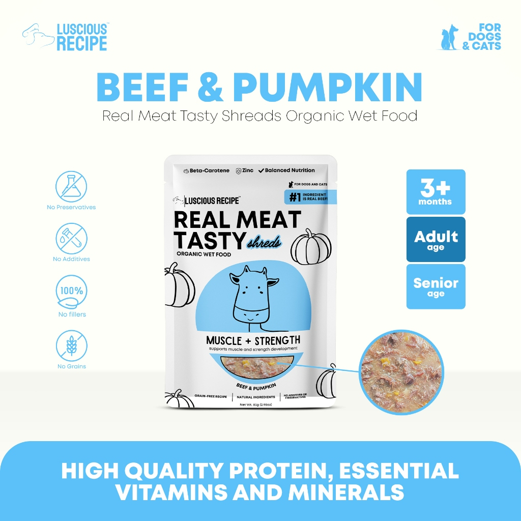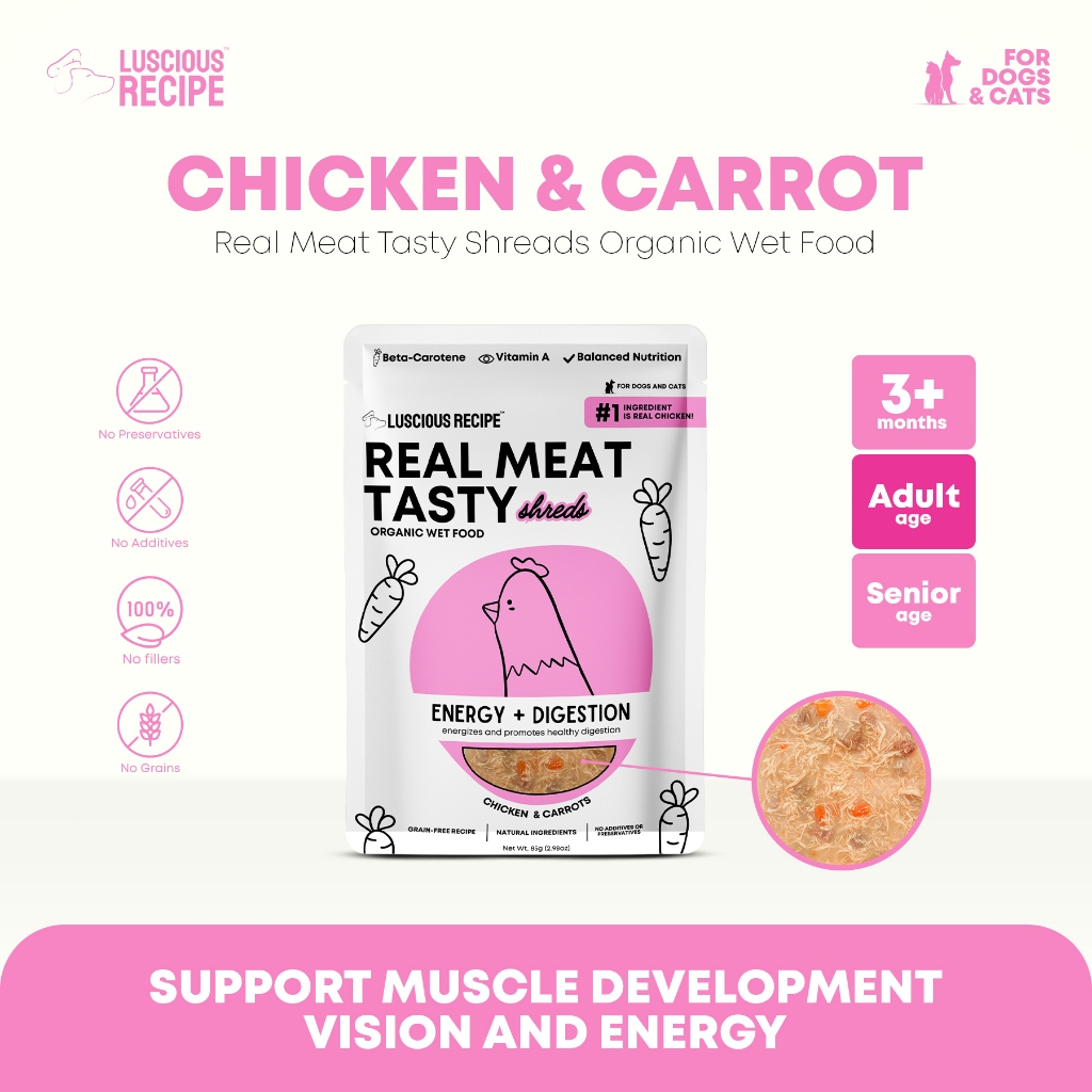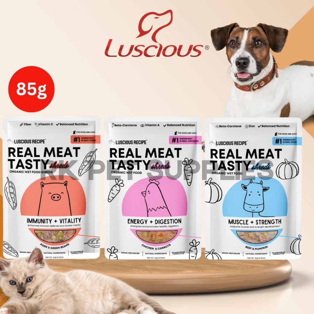 85g Luscious Recipe Real Meat Tasty Shreds Premium Organic Nutrition Wet Food All Stages Adult Puppy