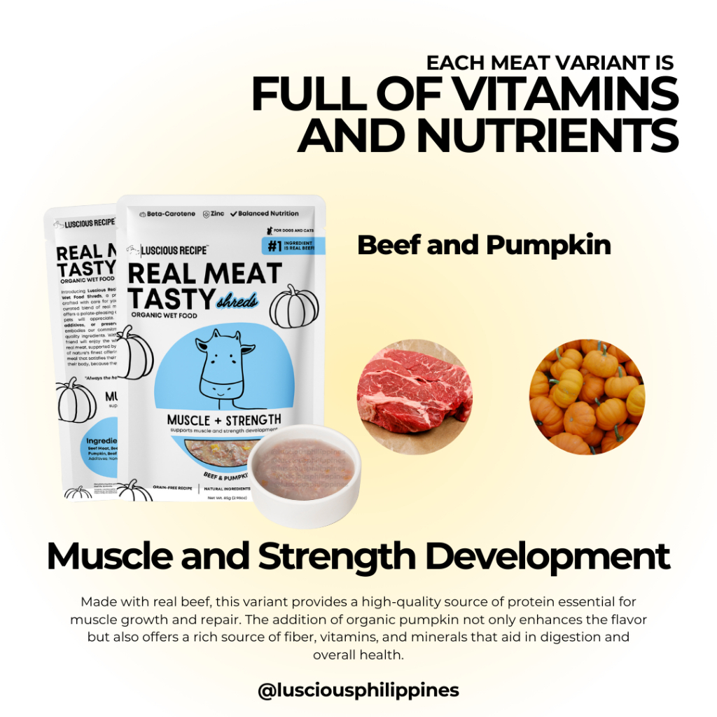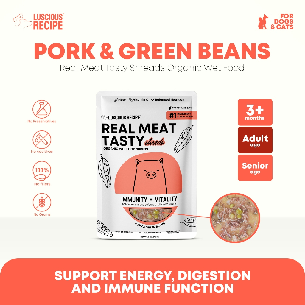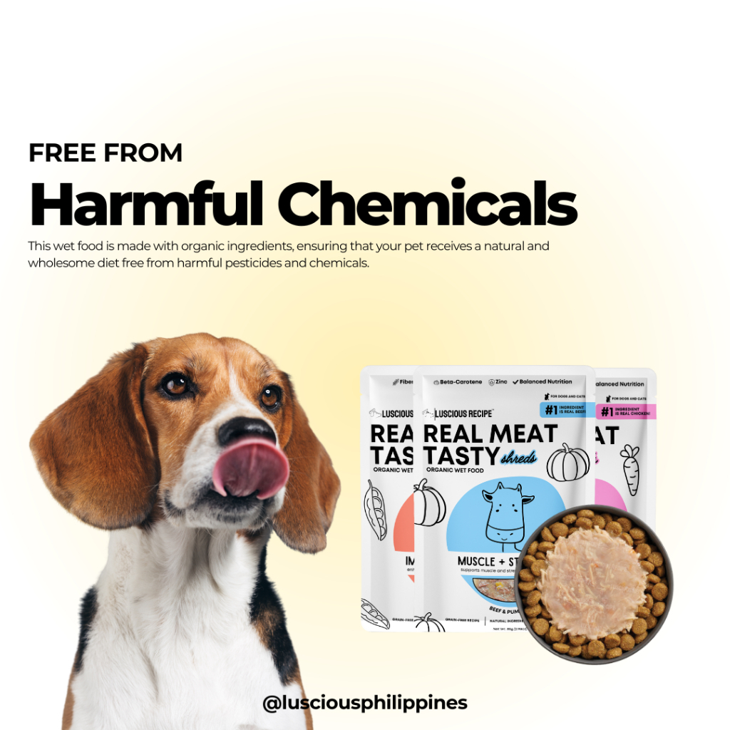 85g Luscious Recipe Real Meat Tasty Shreds Premium Organic Nutrition Wet Food All Stages Adult Puppy