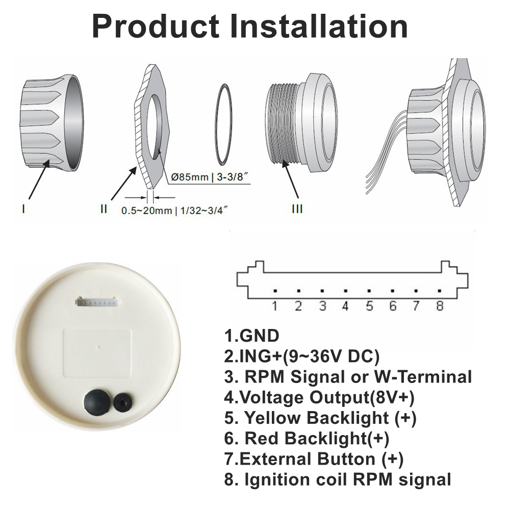85mm Vintage Series Multi-Signal Car Tachometer with Digital Display 8000/12000RPM Tachometer for GM Trucks RVs