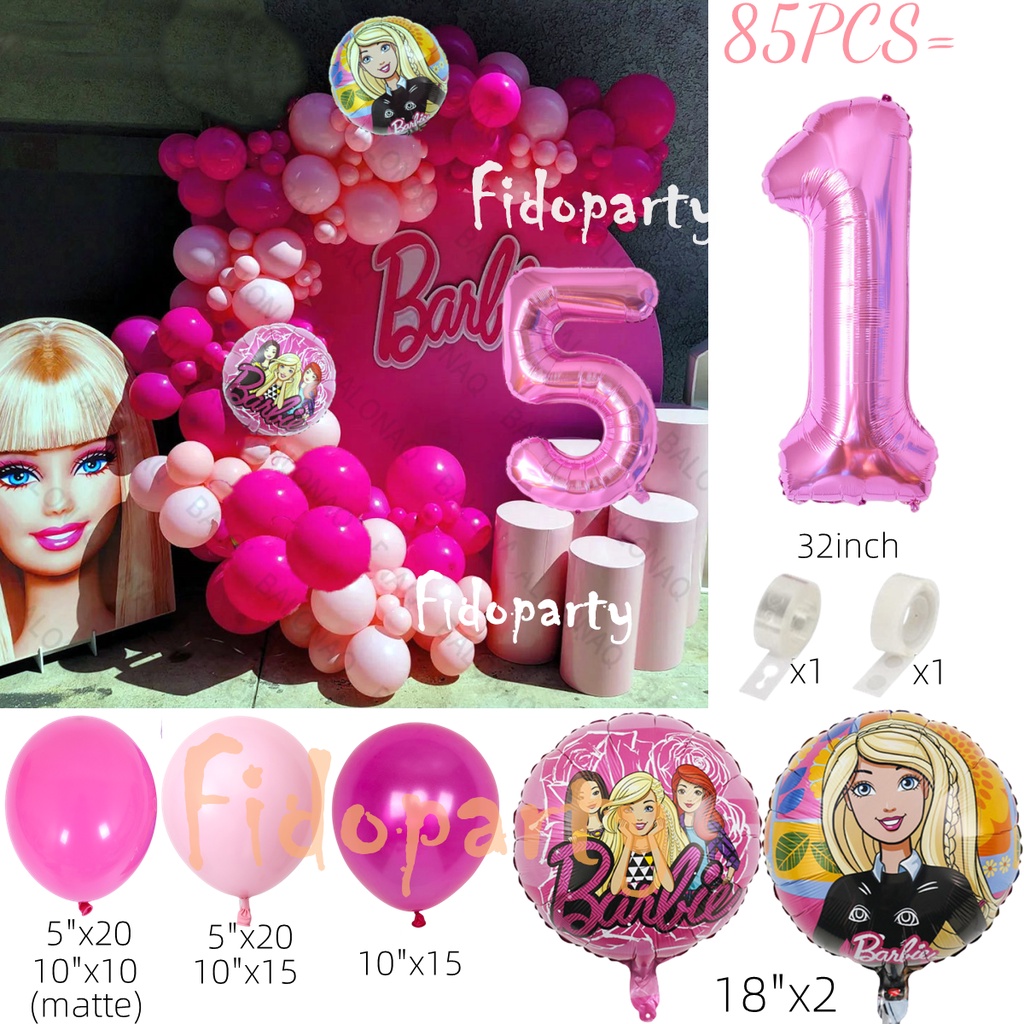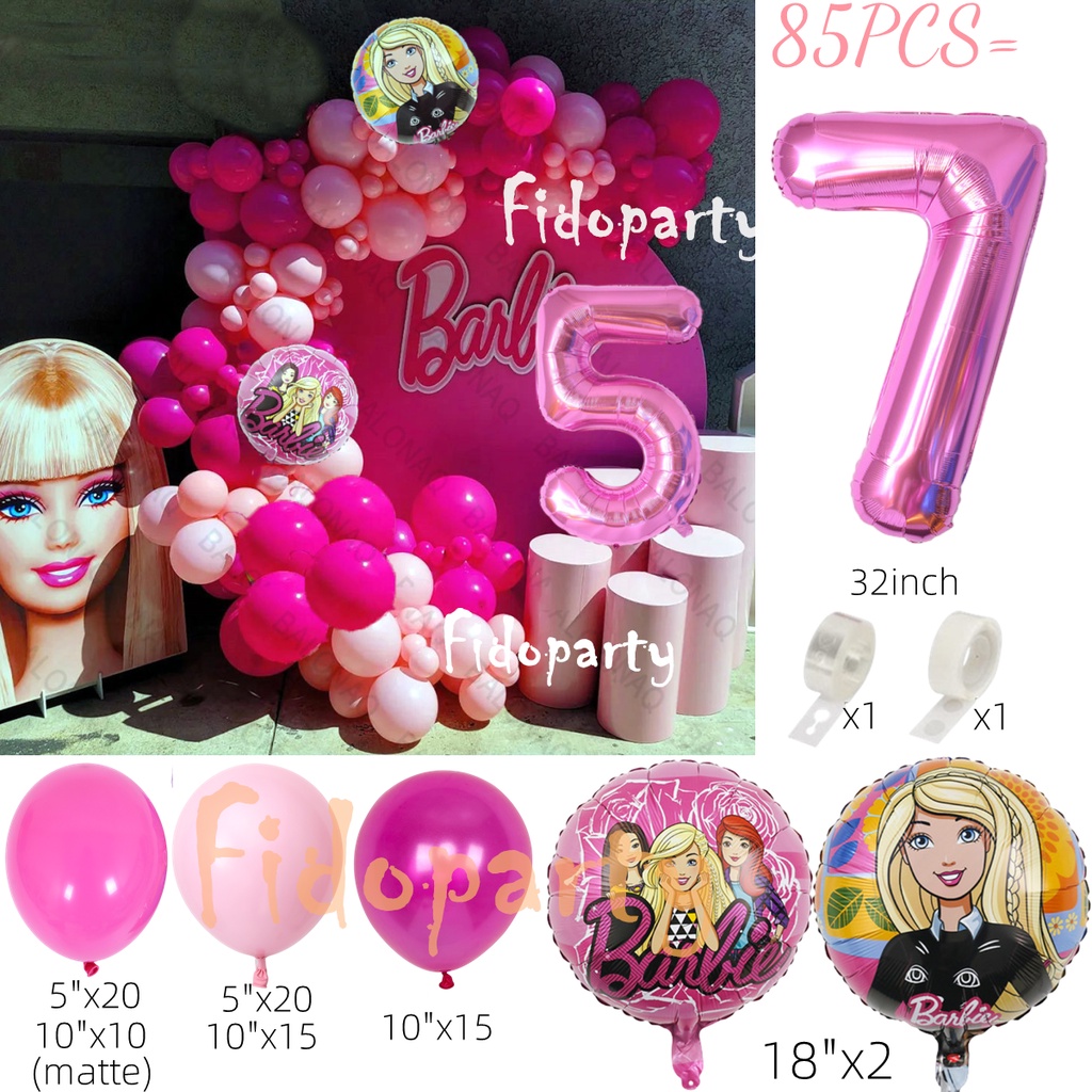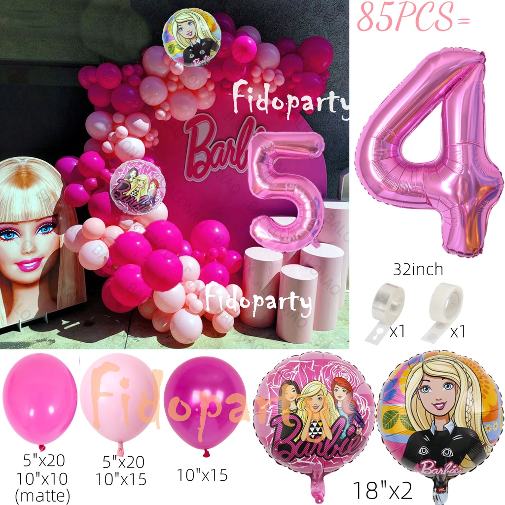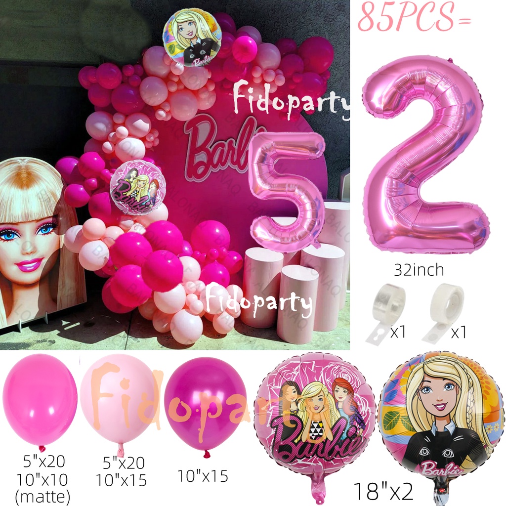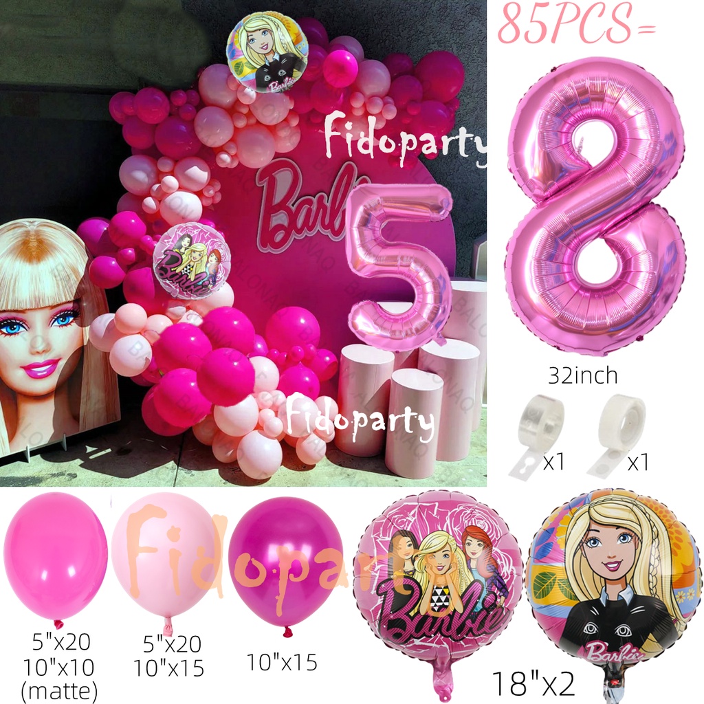 85pcs Barbie Balloon Pink Girl Latex Balloons For Barbie Theme Girl Birthday Wedding Decoration Baby Shower Party Needs