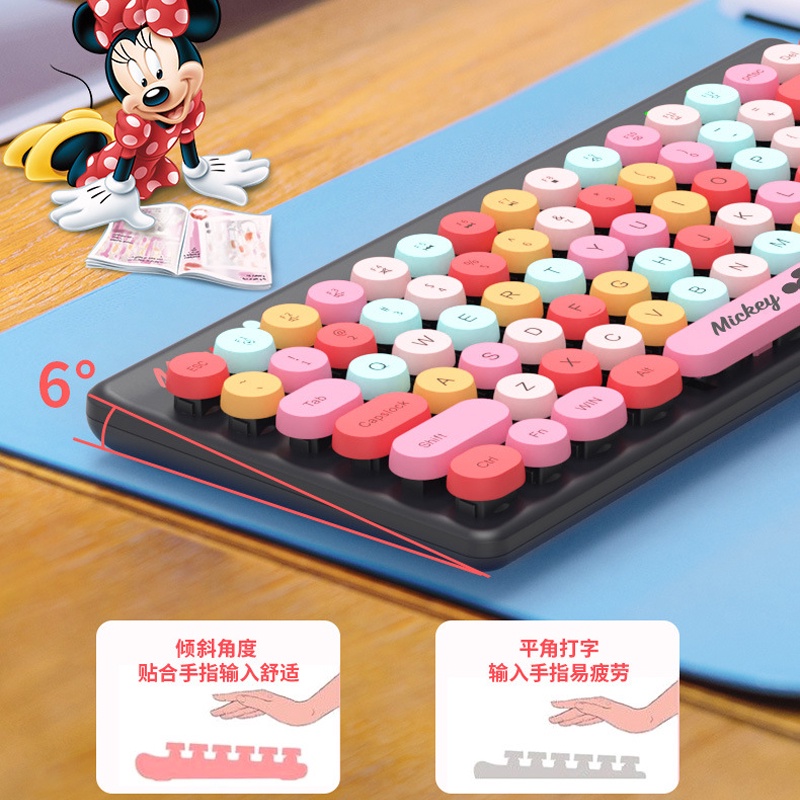 86 Keys Disney LF85 2.4GHz Wireless Keyboard Mouse Set Mickey Mouse Vintage Punk Concave Keycap Round Frosted Color Keycap Noise Reduction Cute Wireless Mini Keyboard Set Gifts