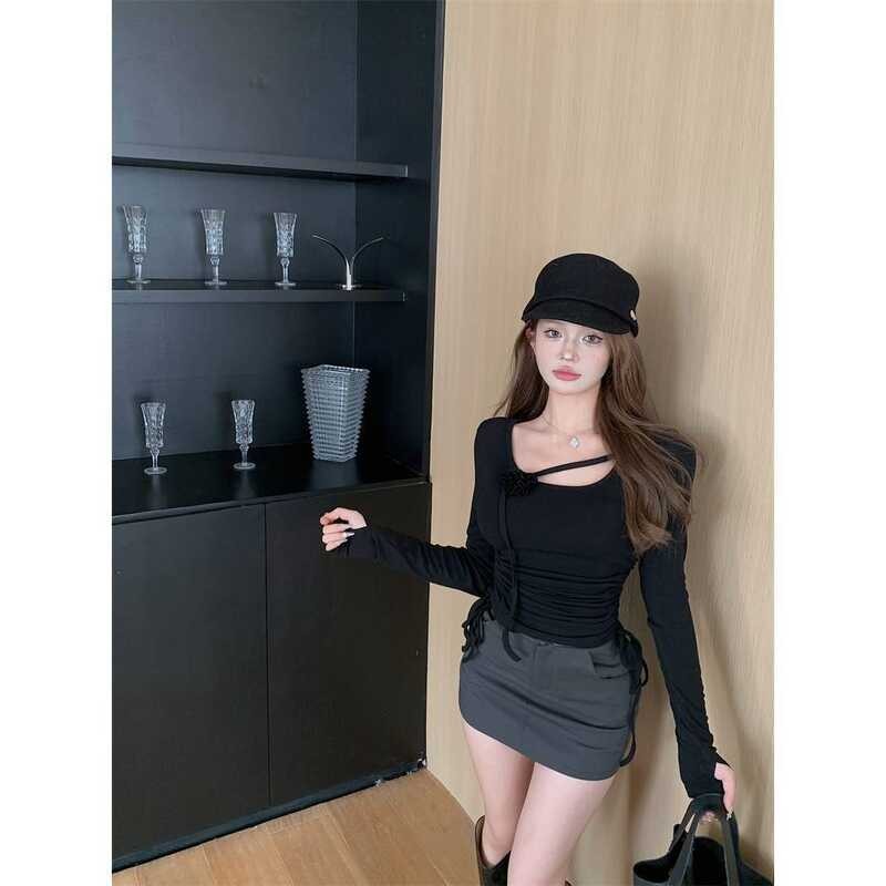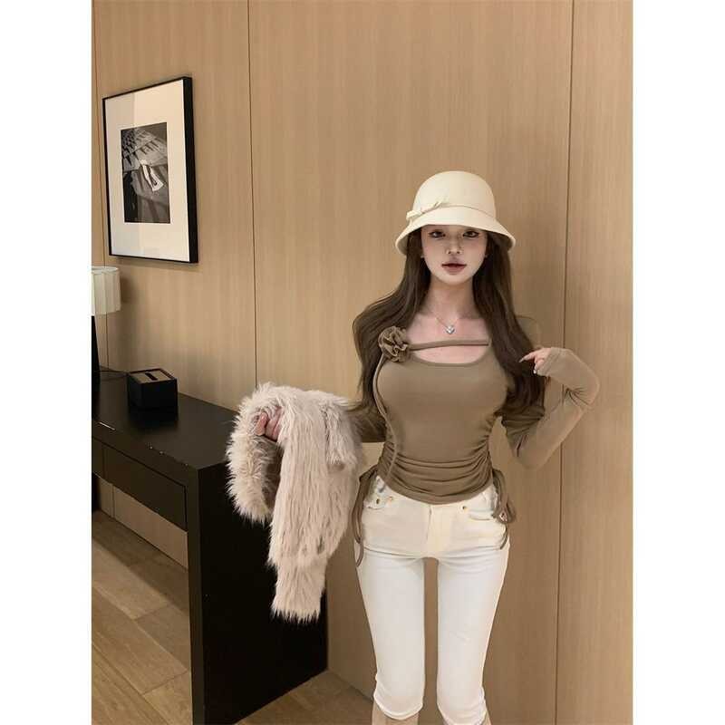 862 Mga Damit Taglagas At Taglamig, T Shirt Tatlong Dimensyon Bulaklak Na Mahaba Ang Manggas