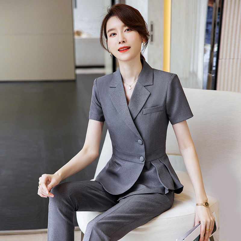 8622 Host Hotel Front Desk Office Formal Wear Business Workwear Women's Skirt Suit Small Suit Jacket Ladies Spring Summer Autumn Large Size Professional Wear Temperament Women's Temperament Suit Workwear Fashion Suit 2023 New Style Uniform Summer Short-Sl