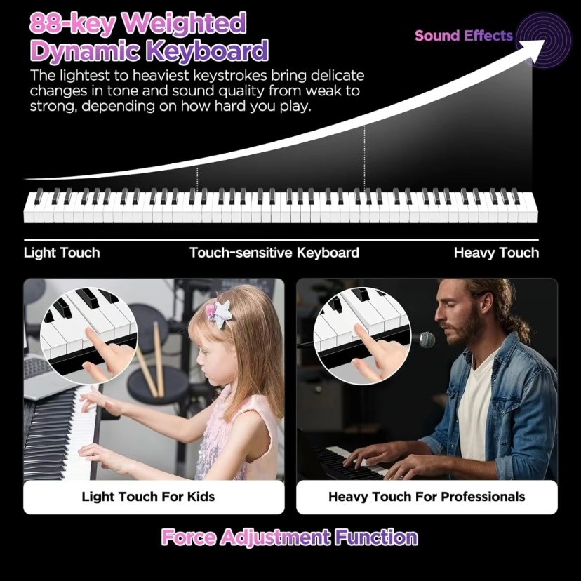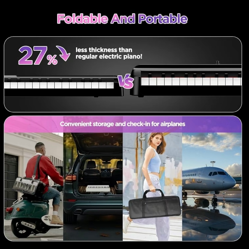 88 Keys Folding Electric Piano Portable Bluetooth Digital Piano Fully Weighed Keyboard For Beginners