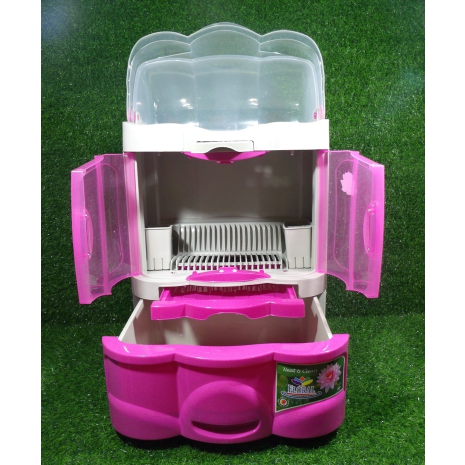 8809-DC1 Uniglobal Floral Dish Cabinet with 1 drawer