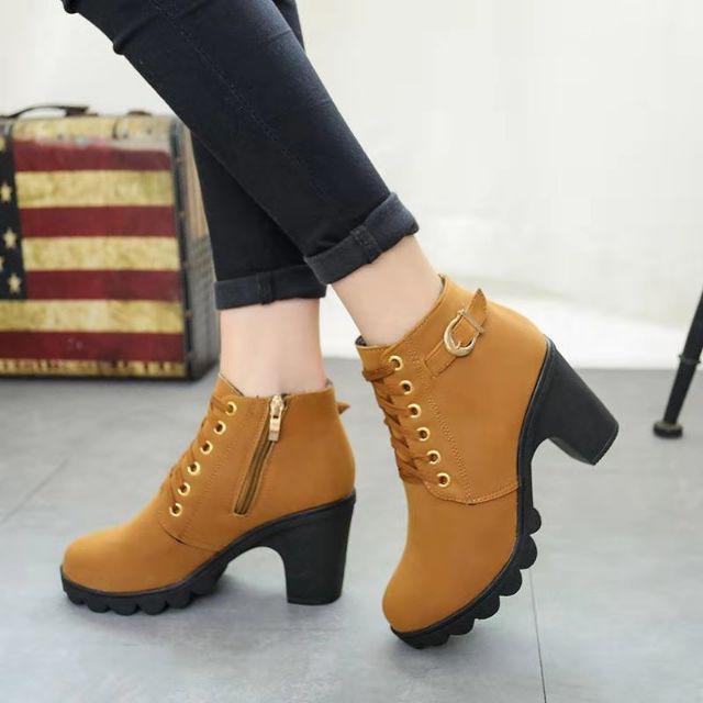 888#Bestseller Korean fashion Ankle Boots Women High Heels Suede Shoes (add 1 size)