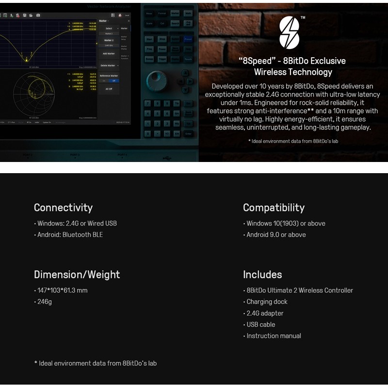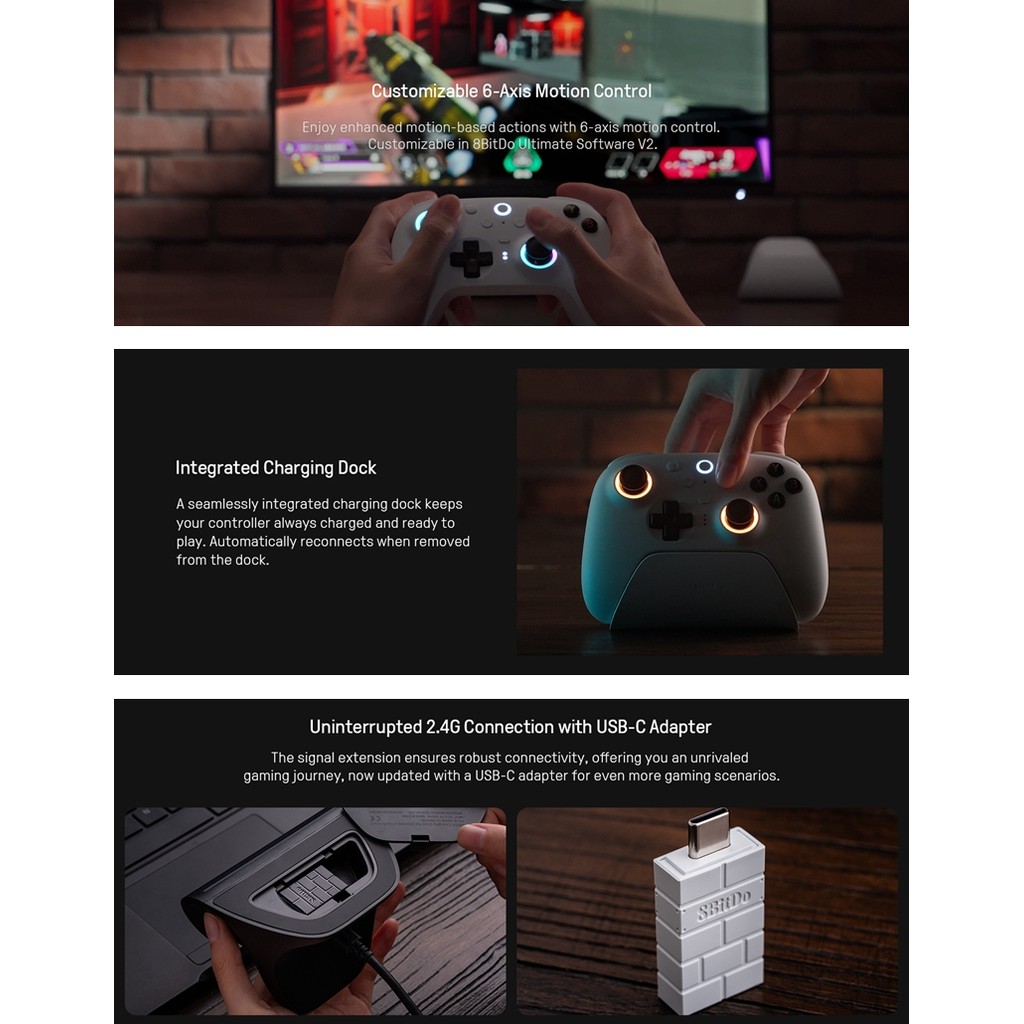 8BitDo Ultimate 2 Wireless Controller for Windows PC Android Steam Deck Apple iOS Raspberry Pi TMR Joysticks Bluetooth Gamepad 8BitDo Ultimate 2.4G Controller Hall Effect Joysticks