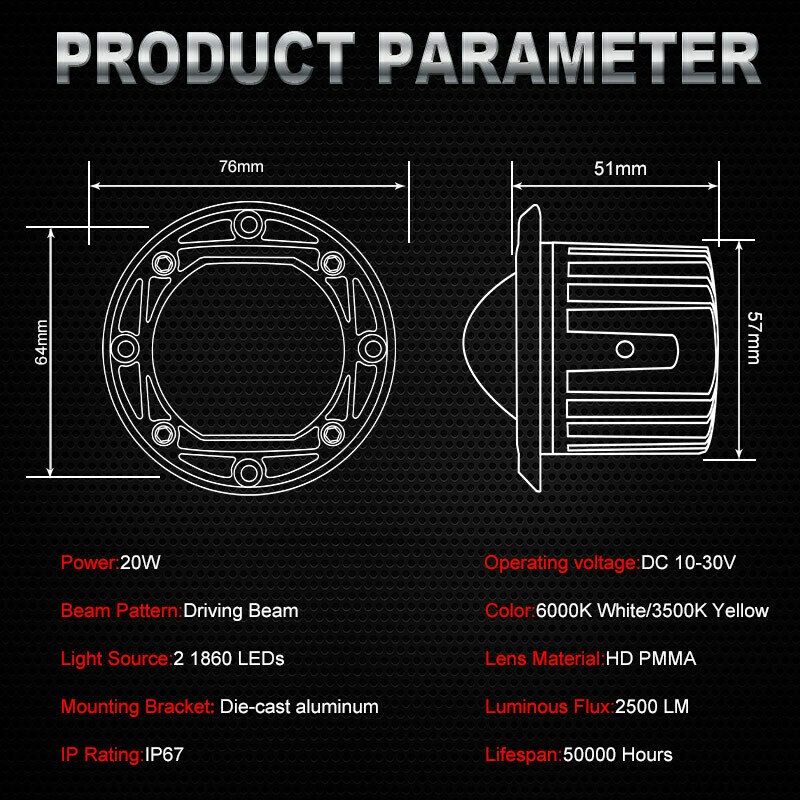 8D 3" 20W Flush Mount LED Work Light Bar Offroad 12V 24V White Yellow Spotlight LED Fog Lights for Car Truck 4x4 Atv Pods