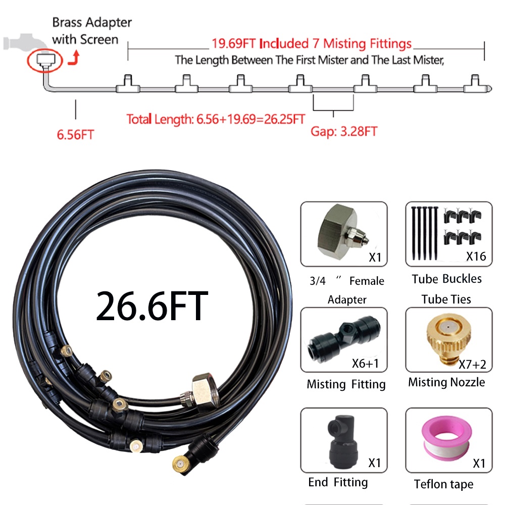 8M Cooling Water Fog Sprayer System Garden Nebulizer Patio Misting Outdoor Misting Kit for Greenhouse