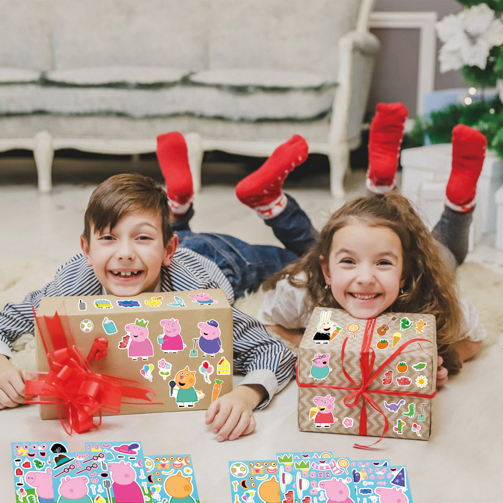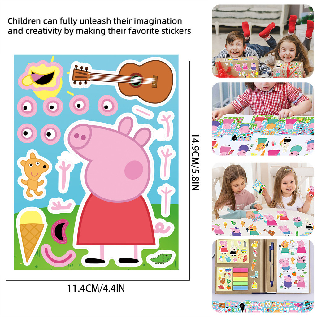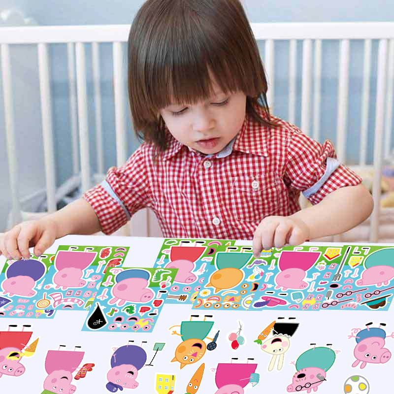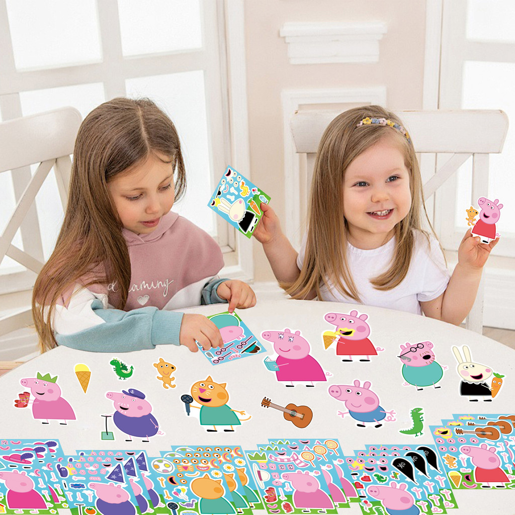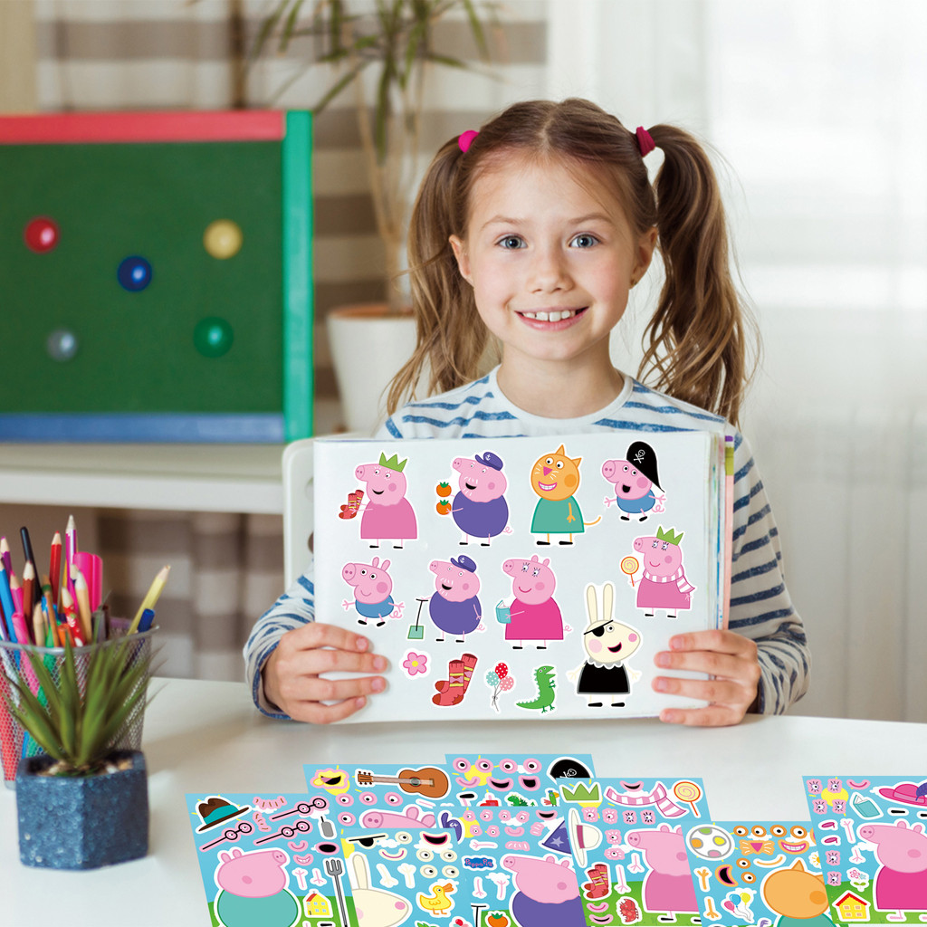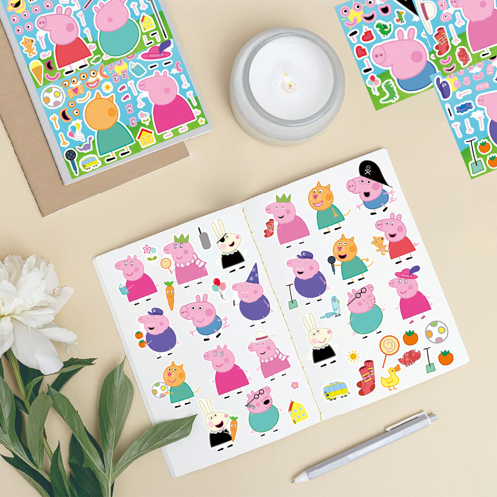 8PCS Cute Cartoon Peppa Pig Page Creative Dressing Sticker Children DIY Pink Piglet Handbook Decoration Puzzle
