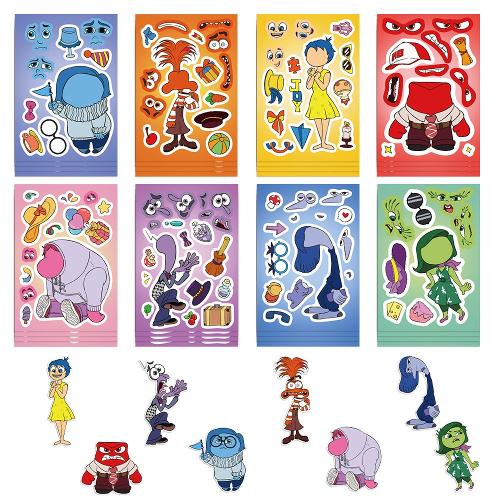8PCS Disney Cartoon Inside Out Theme Puzzle Sticker for Children's Anime Series Puzzle Interactive DIY Face Stickers