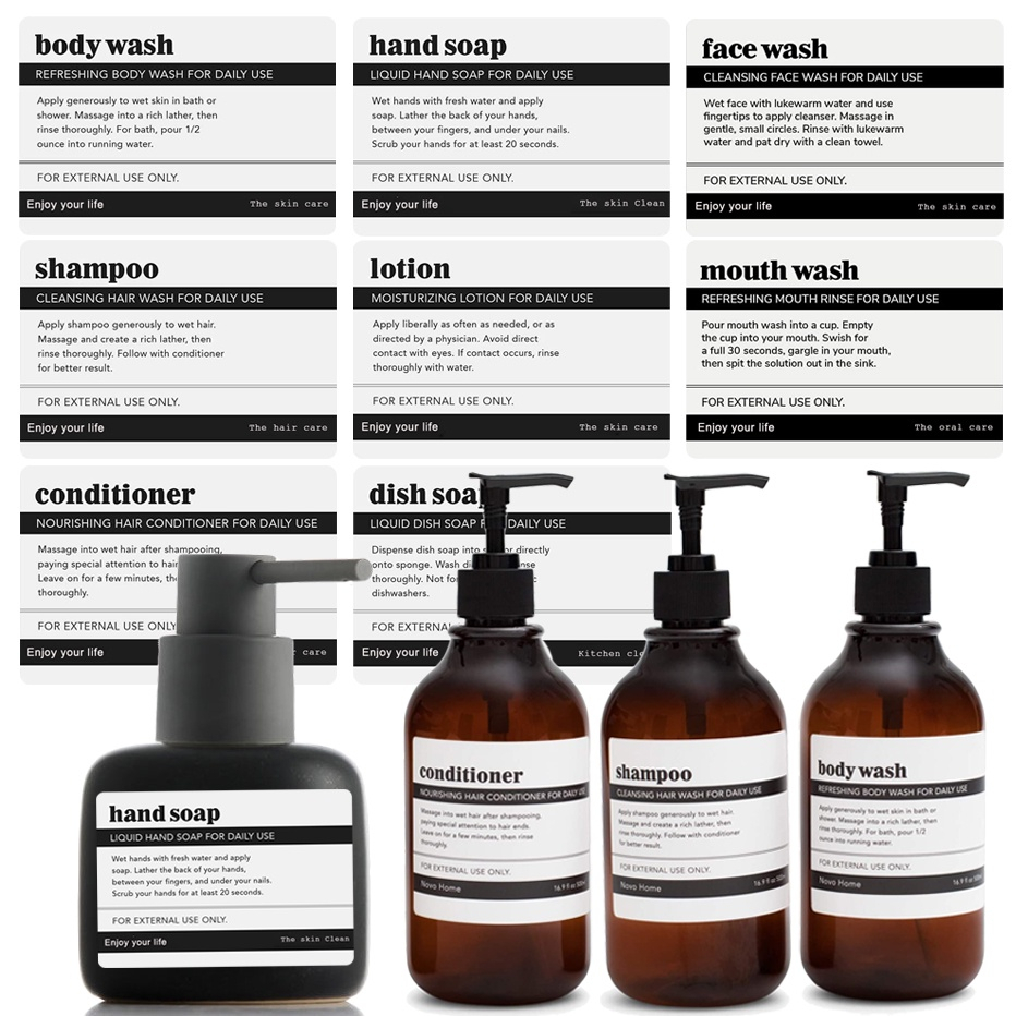 8PCS Waterproof Labels for Dispenser Bottles Vintage Farmhouse Peel and Stick Labels Hand Soap Shampoo Bottle Stickers