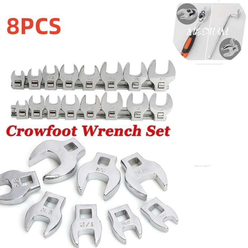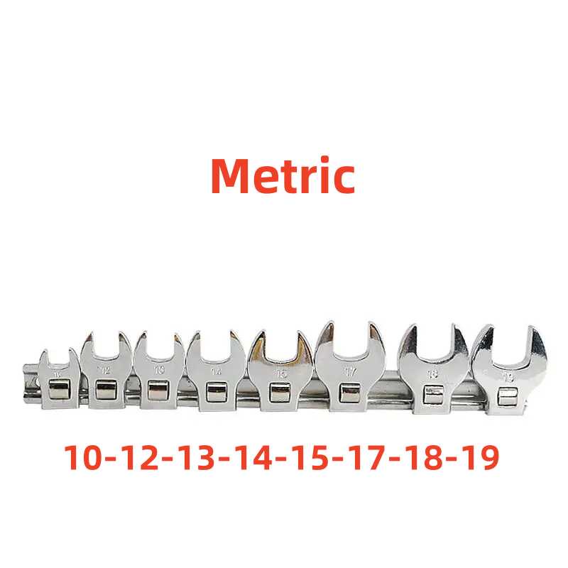 8Pcs 3/8 Inch Drive Crowfoot Wrench Set 10 to 22mm Metric/ Imperial Chrome Plated Crow Foot Open En