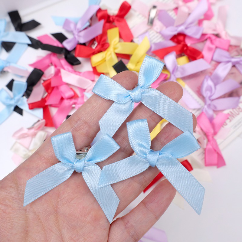 [Wholesale] 8Pcs Y2K Mini Candy Color Bowknot Fabric Hair Clips Sweet Ballet Style Ribbon Bow Bangs Duckbill Hairpins for Girls Women Korean Lovely Grab Clip Hair Accessories