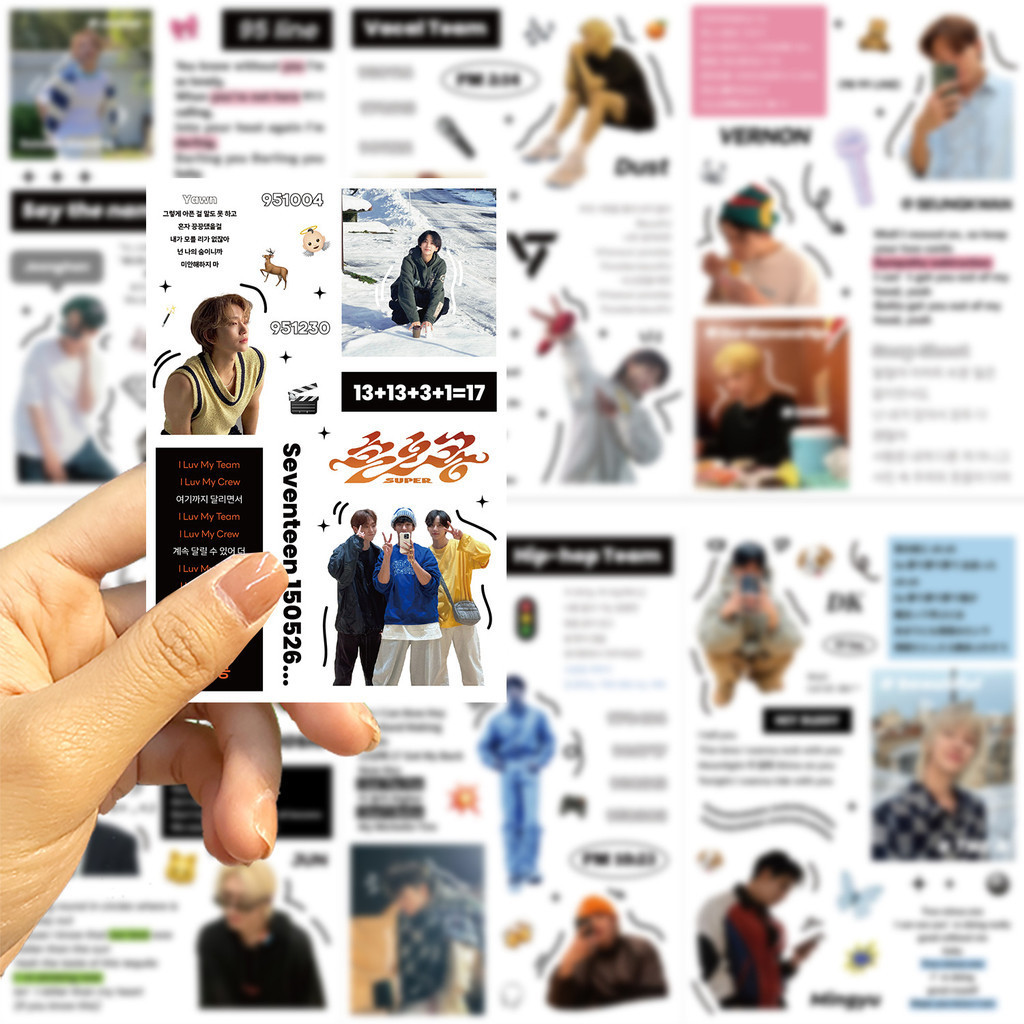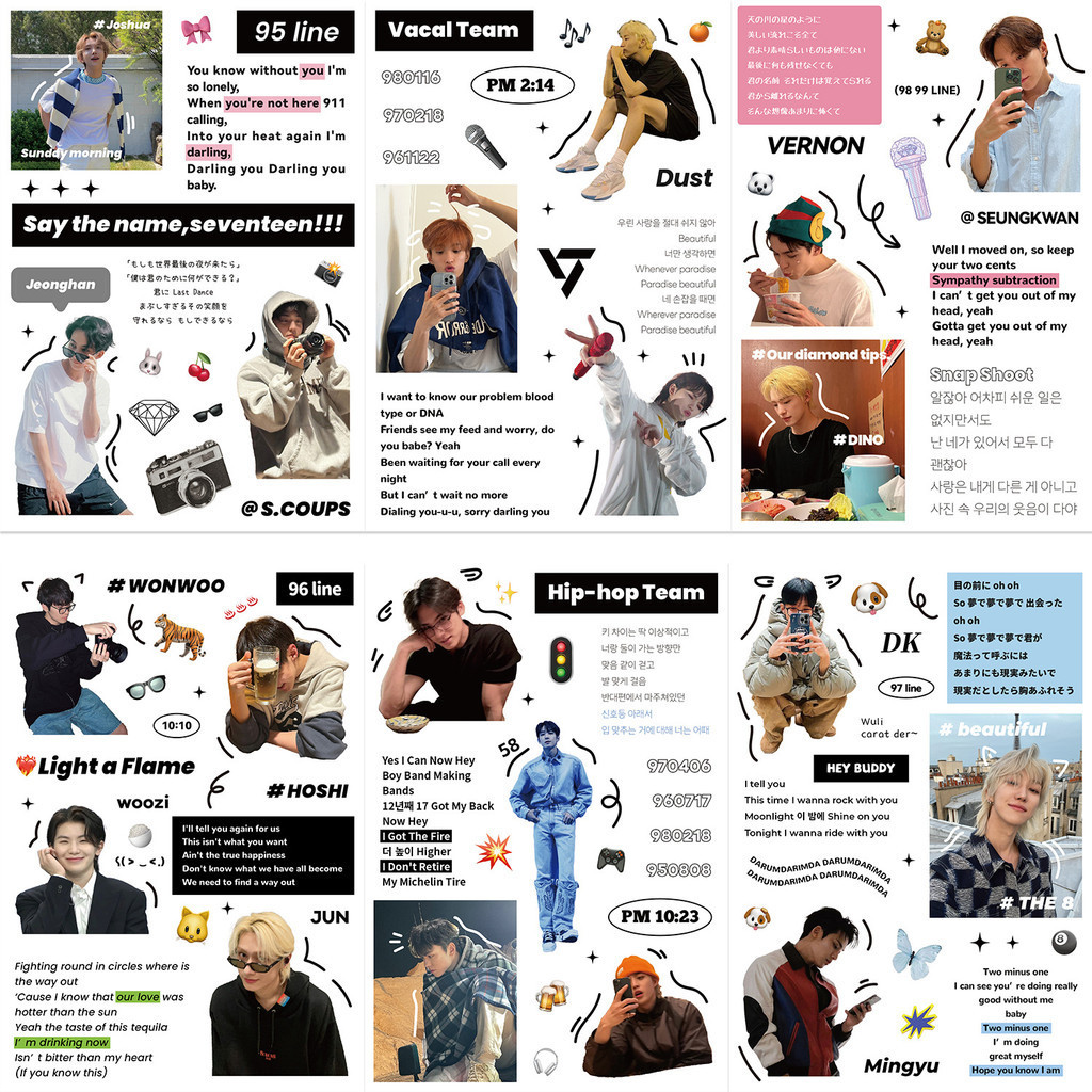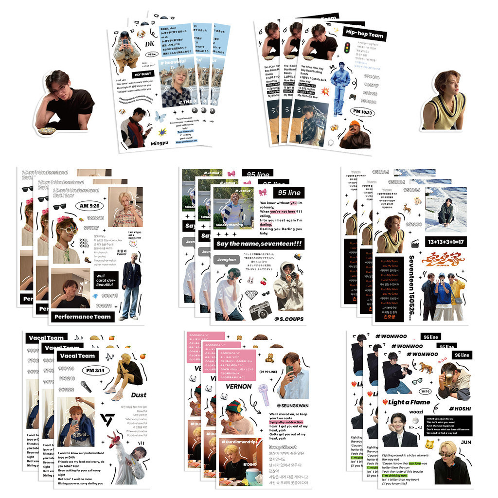 8Sheets KPOP Boy Band Seventeen Waterproof Stickers For Helmet Bicycle Hand Account Pencil Case Decals LanLanStickersWorld
