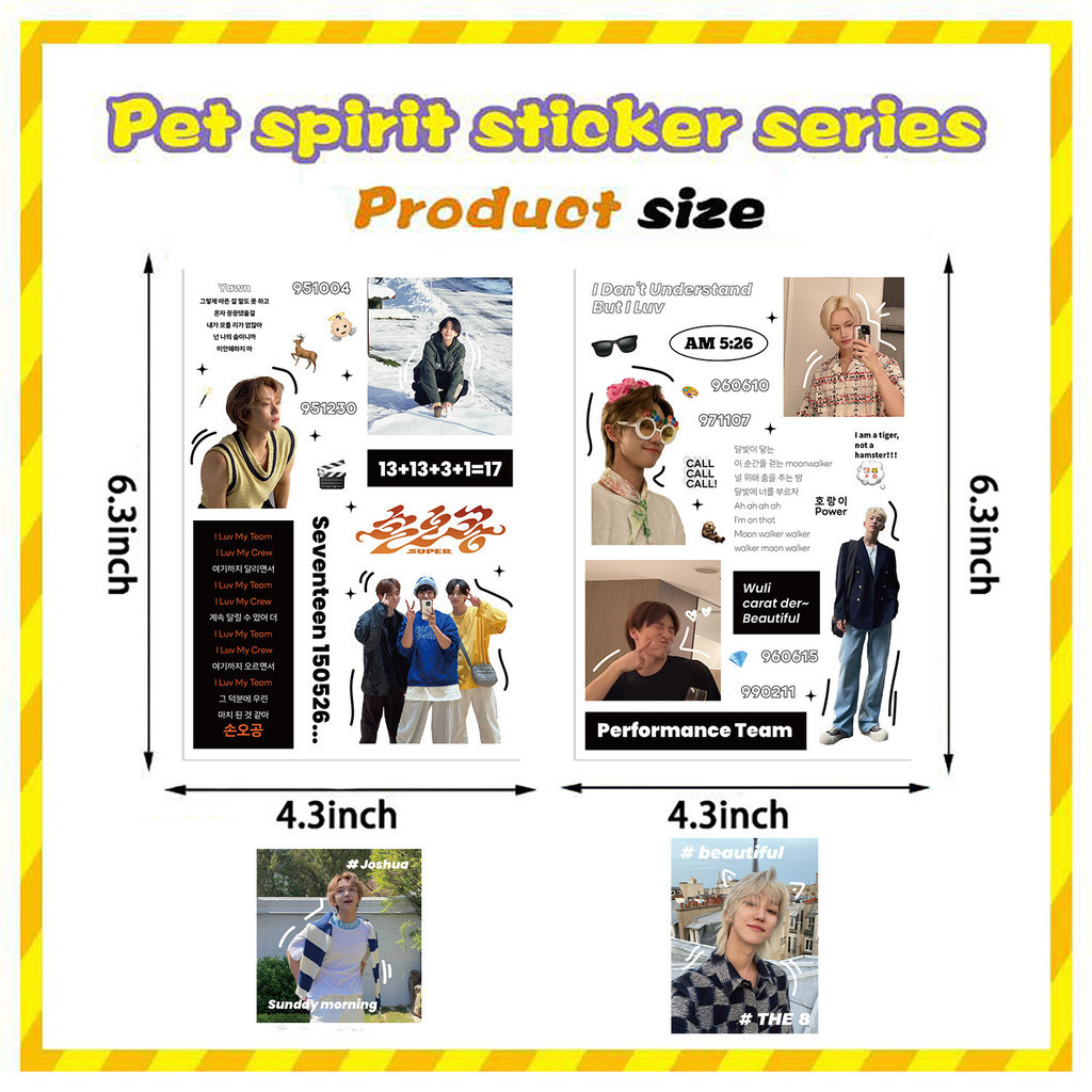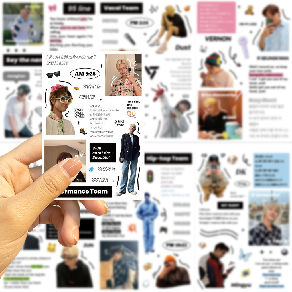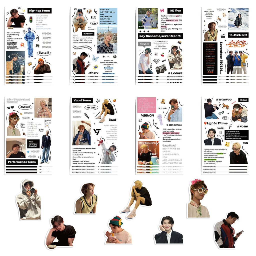 8Sheets KPOP Boy Band Seventeen Waterproof Stickers For Helmet Bicycle Hand Account Pencil Case Decals LanLanStickersWorld