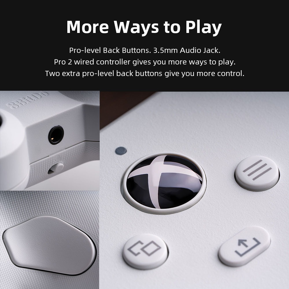 8bitdo - Wired Game Controller Pro 2 For Xbox, Hall Effect Controller, Updated, 3.5mm Audio Jack, Windows 10/11, Brand New