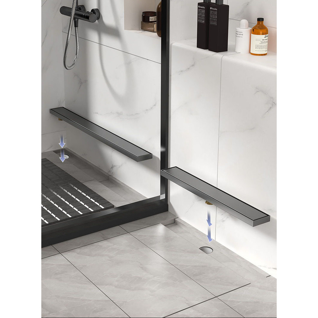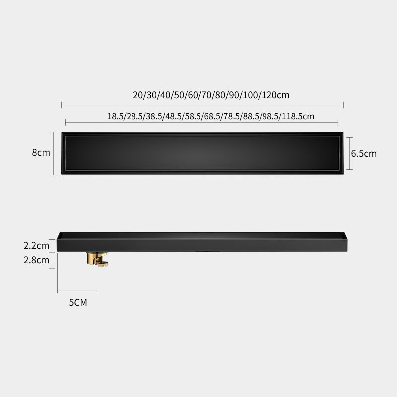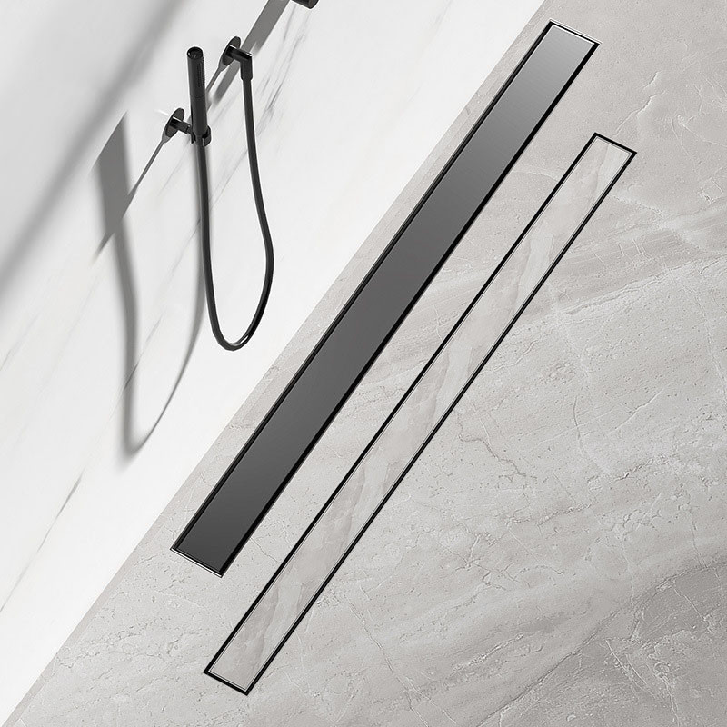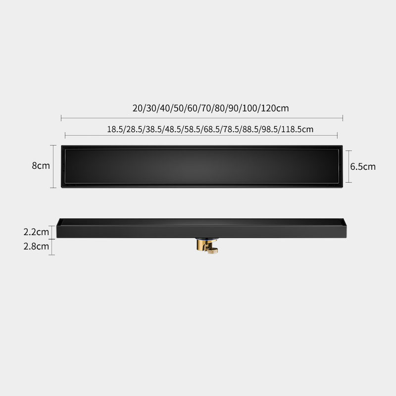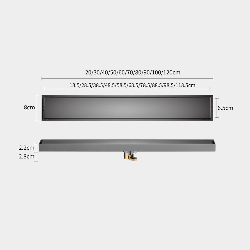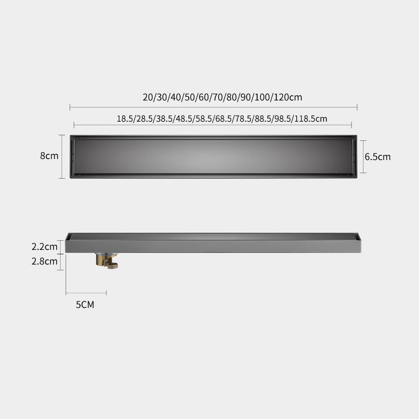8cm Hidden Linear Shower Drain Dark Grey,Stainless Steel Rectangular Shower Floor Drain Tile-insert