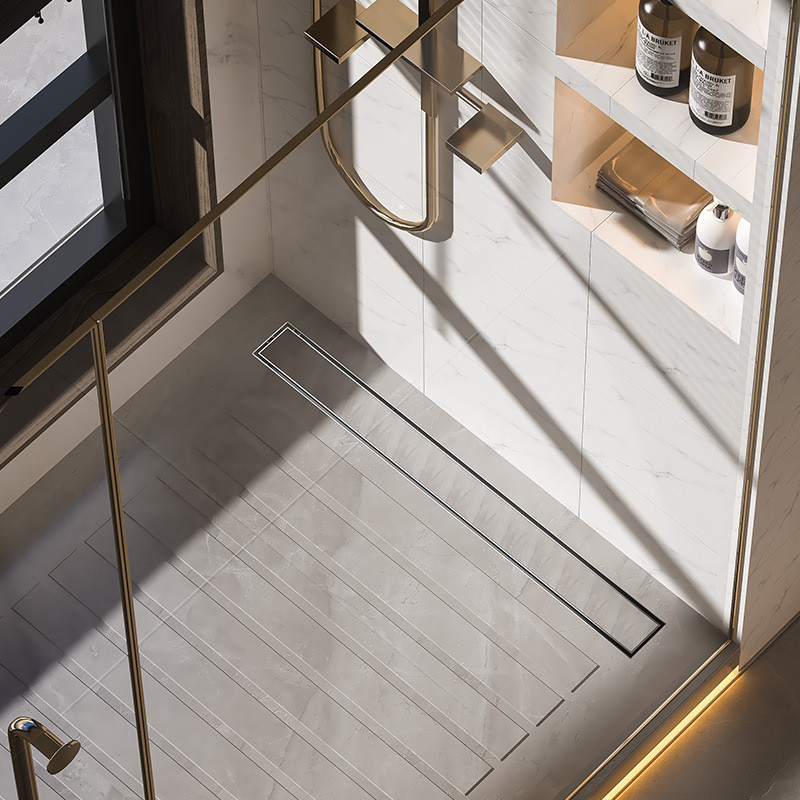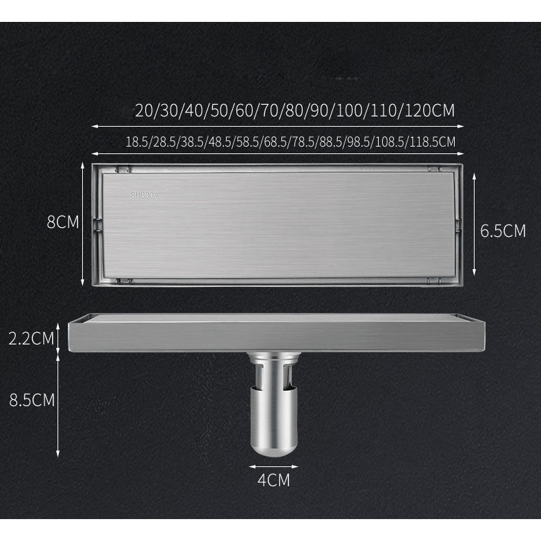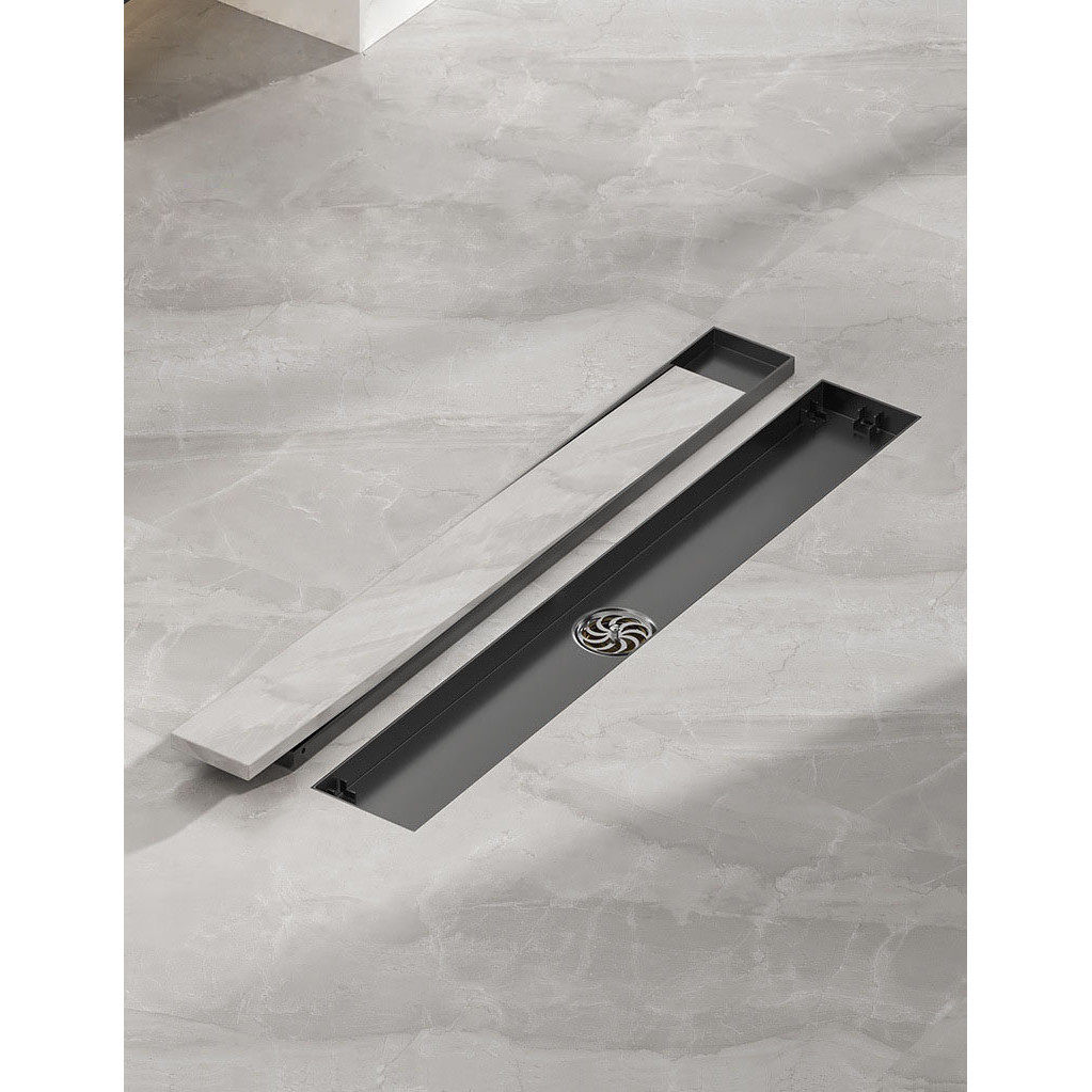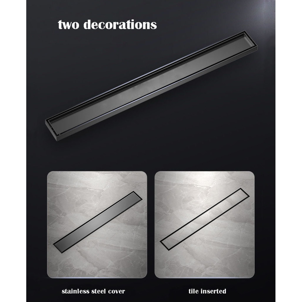 8cm Hidden Linear Shower Drain Dark Grey,Stainless Steel Rectangular Shower Floor Drain Tile-insert