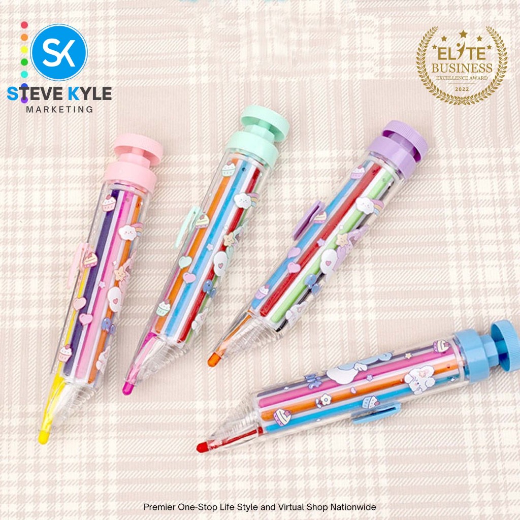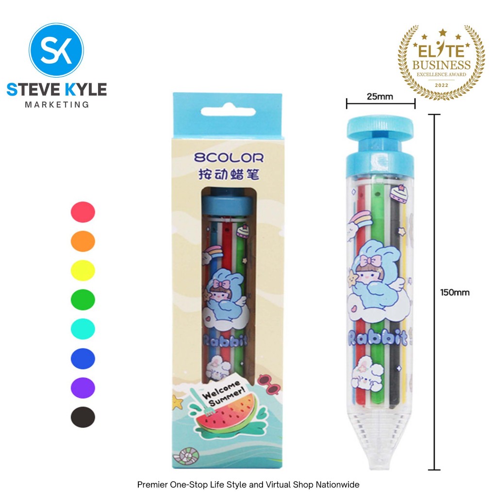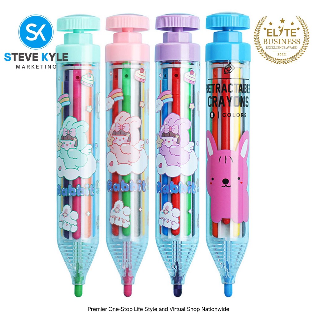 8in1 Colors Multicolor Crayon Pen Retractable Crayon Pens Transparent Barrel Colored Pencil Kids