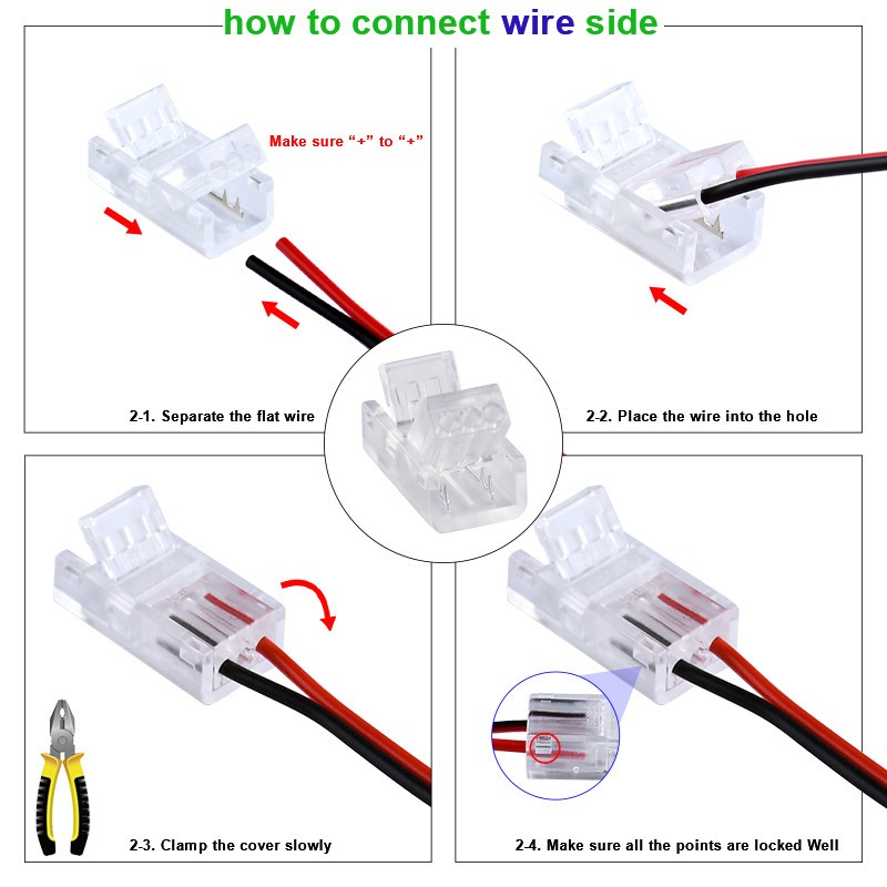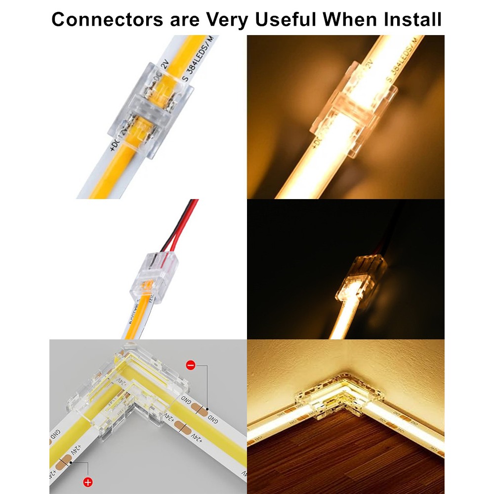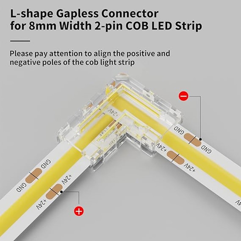 8mm 2pin COB LED Strip Connector Tape Lights L Shape LED Corner Connectors for SMD COB 5050 2835 Strip Light Fixed Clamps, FCOB 2 pin v+ v- Single Color Strip Corner Connection