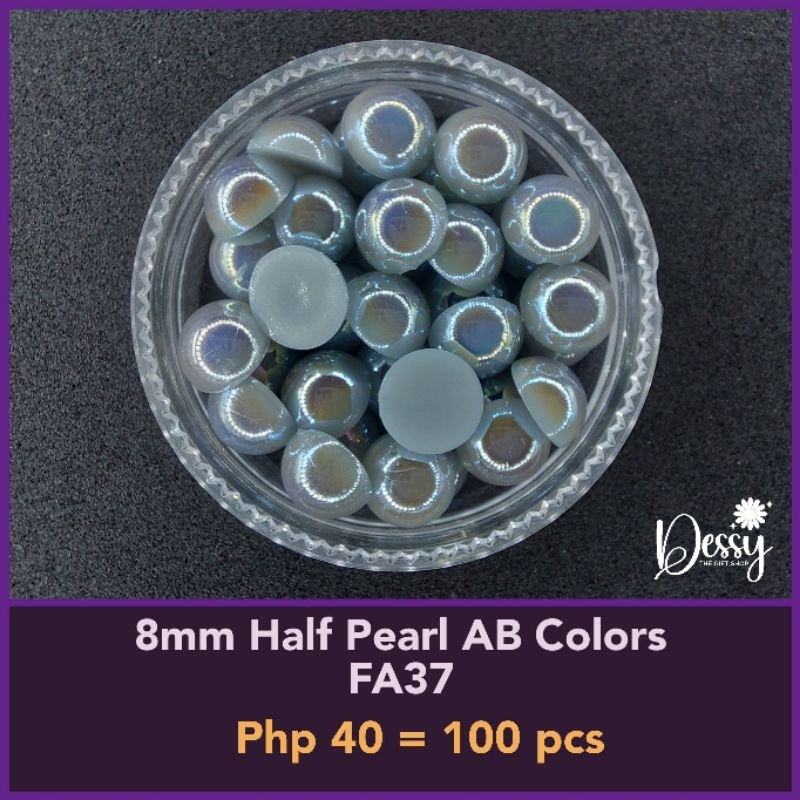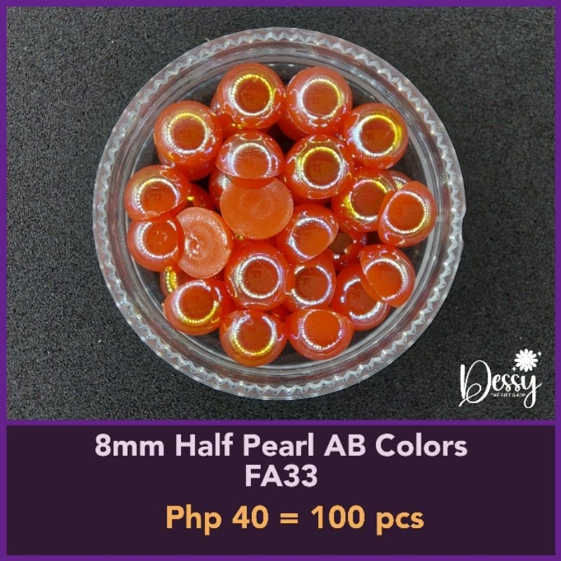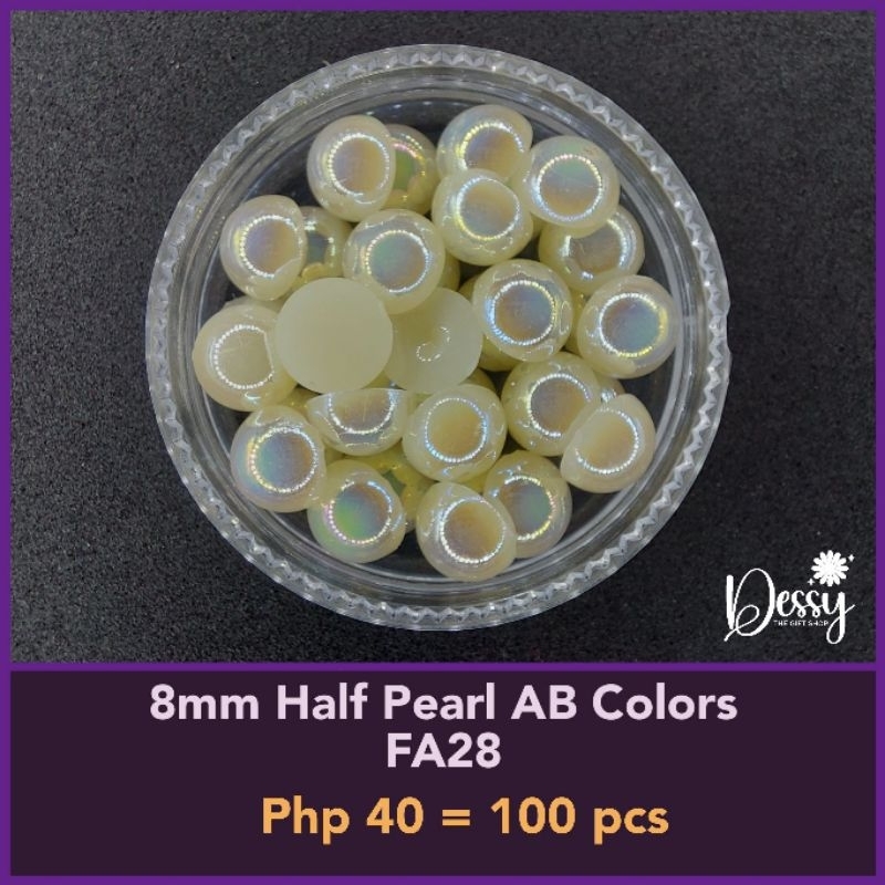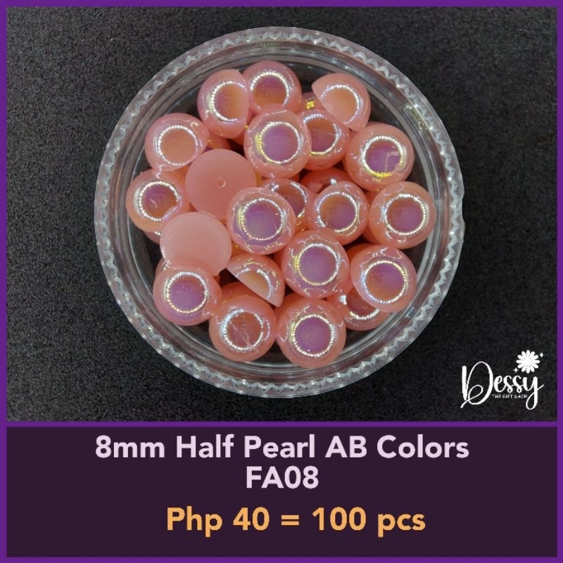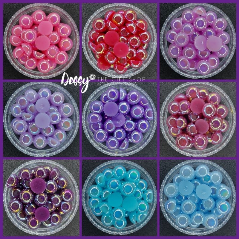 8mm Half Pearl AB Colors 100 pcs - Glitter Gems Gown Sewing Half Pearl