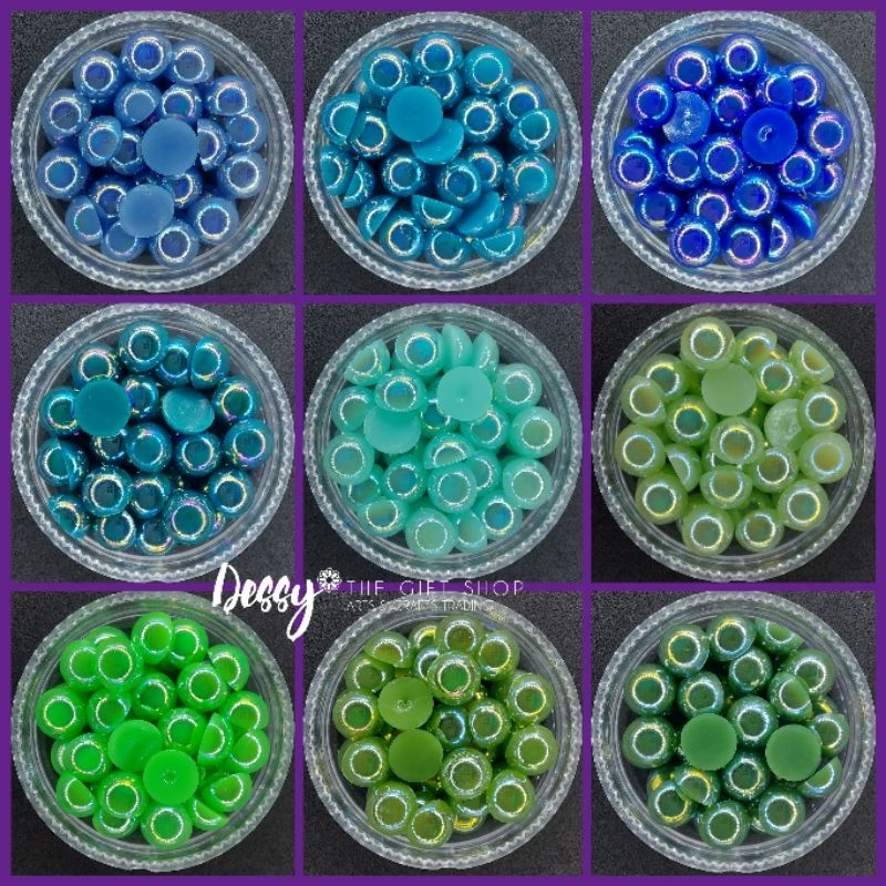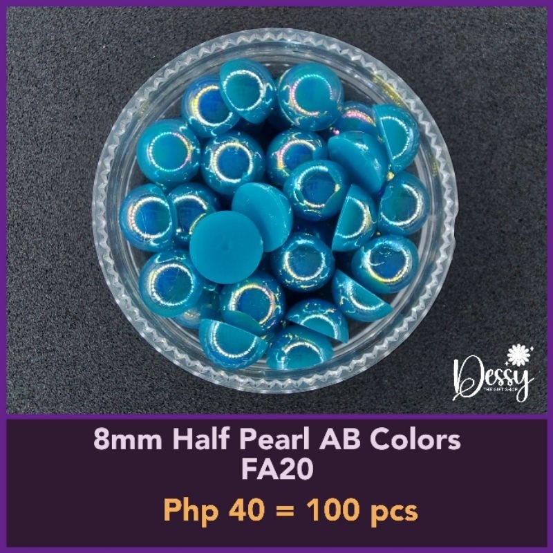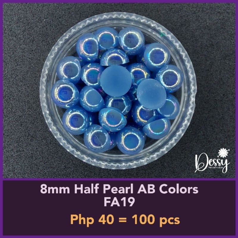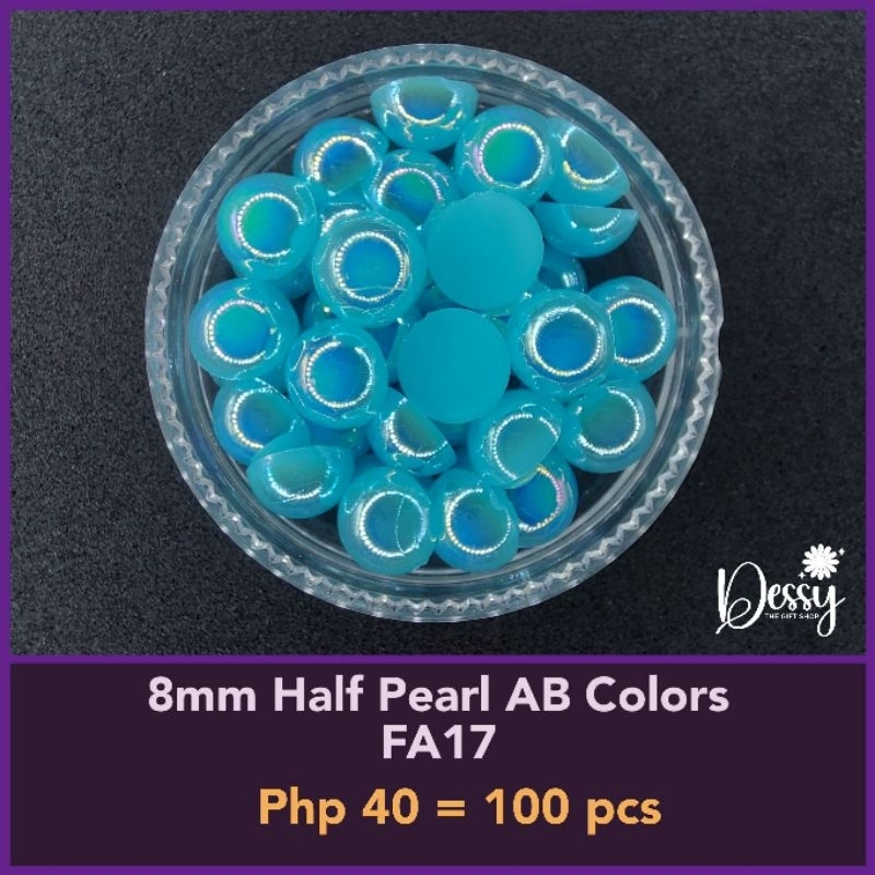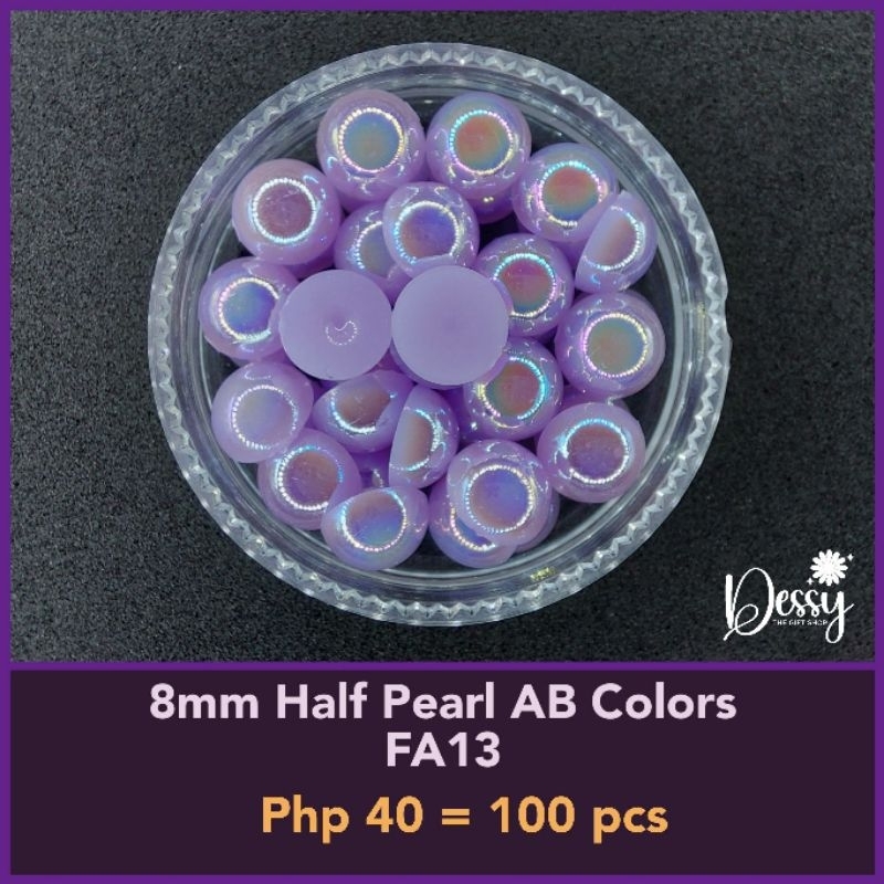 8mm Half Pearl AB Colors 100 pcs - Glitter Gems Gown Sewing Half Pearl
