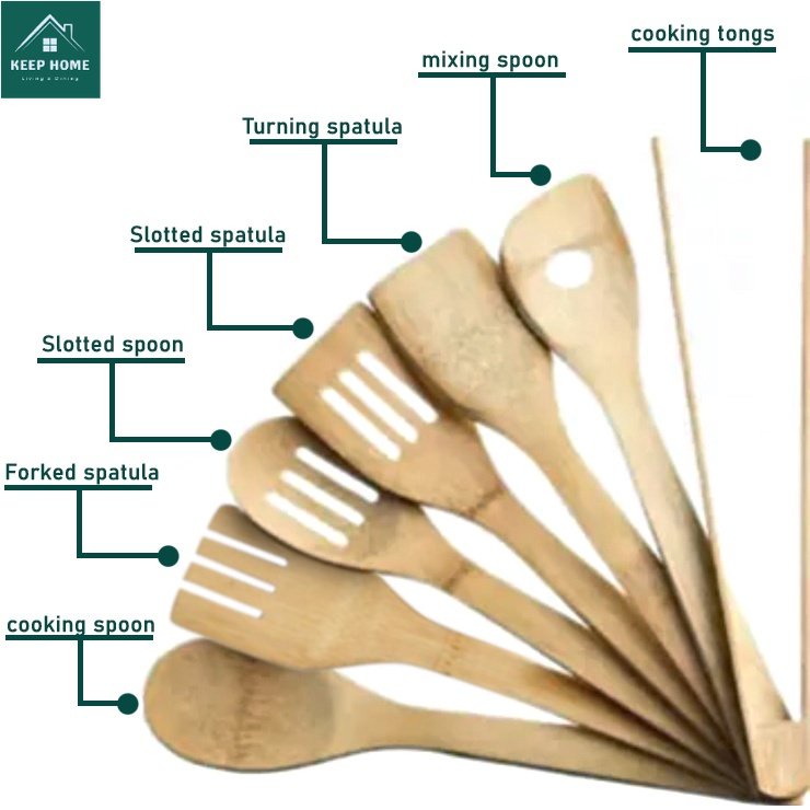 8pcs/6pcs Eco Bamboo Kitchen Utensil Set Wooden Tool Kitchenware Bamboo Utensil Holder Included
