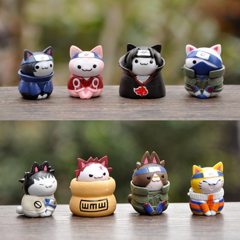 8pcs Anime Naruto Cat Figures Kitten Sasuke Itachi Collectible Action Figurines Mini Itachi Kakashi Collectible Doll Toys