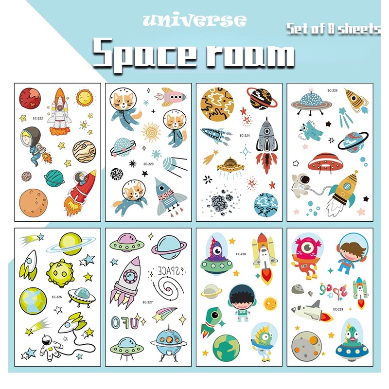 8pcs Children's Space Series Temporary Tattoo Boys and Girls Arm Cartoon Astronauts Art Tattoo Stickers Temporary Tatoo