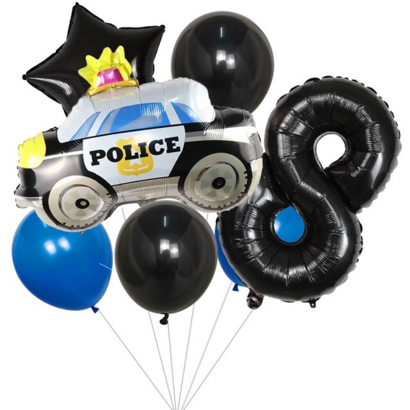 8pcs Engineering Vehicle Theme Balloons Construction Excavator Mini Police Car Balloon 1-9th Birthday Party Decorations