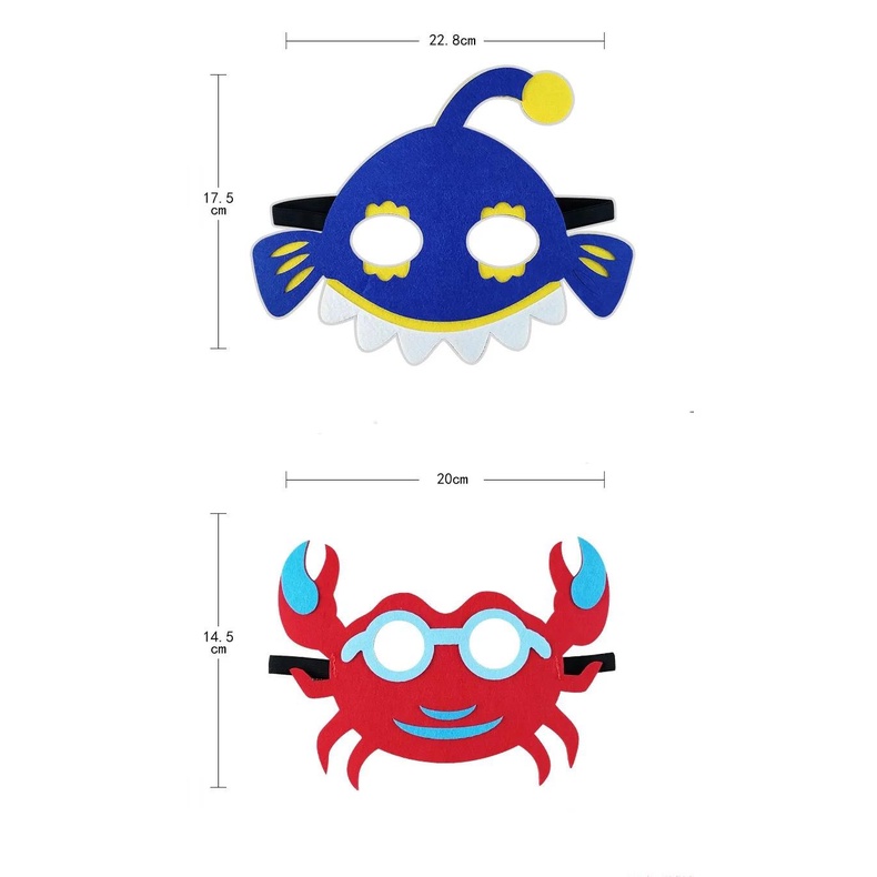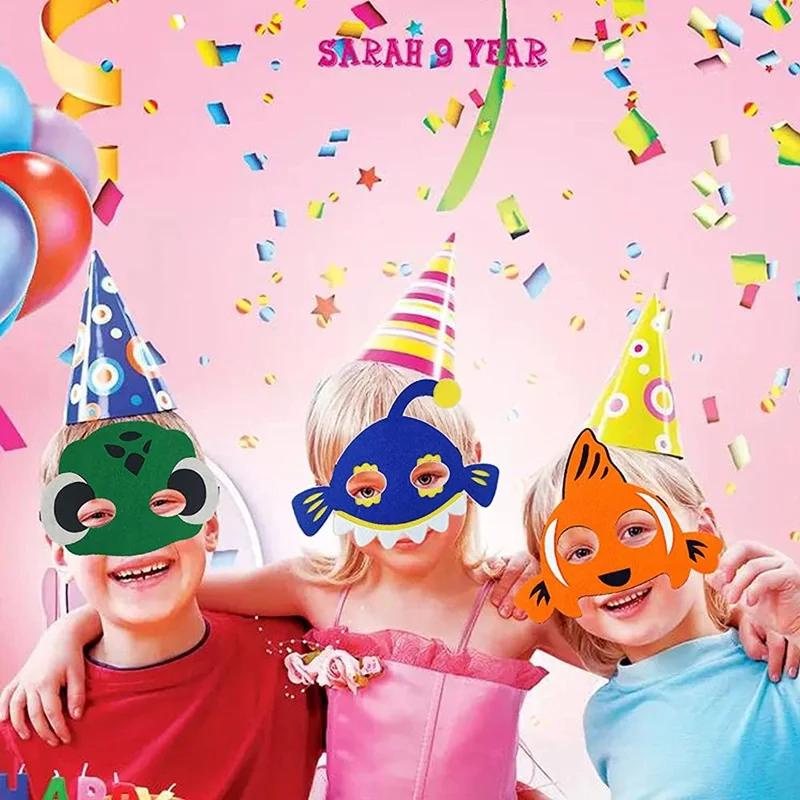 8pcs Kids Ocean Birthday Animal Mask Kindergarten Childrens Makeup Ball Supplies Underwater Party Crab Shark Mask
