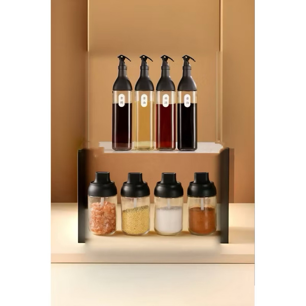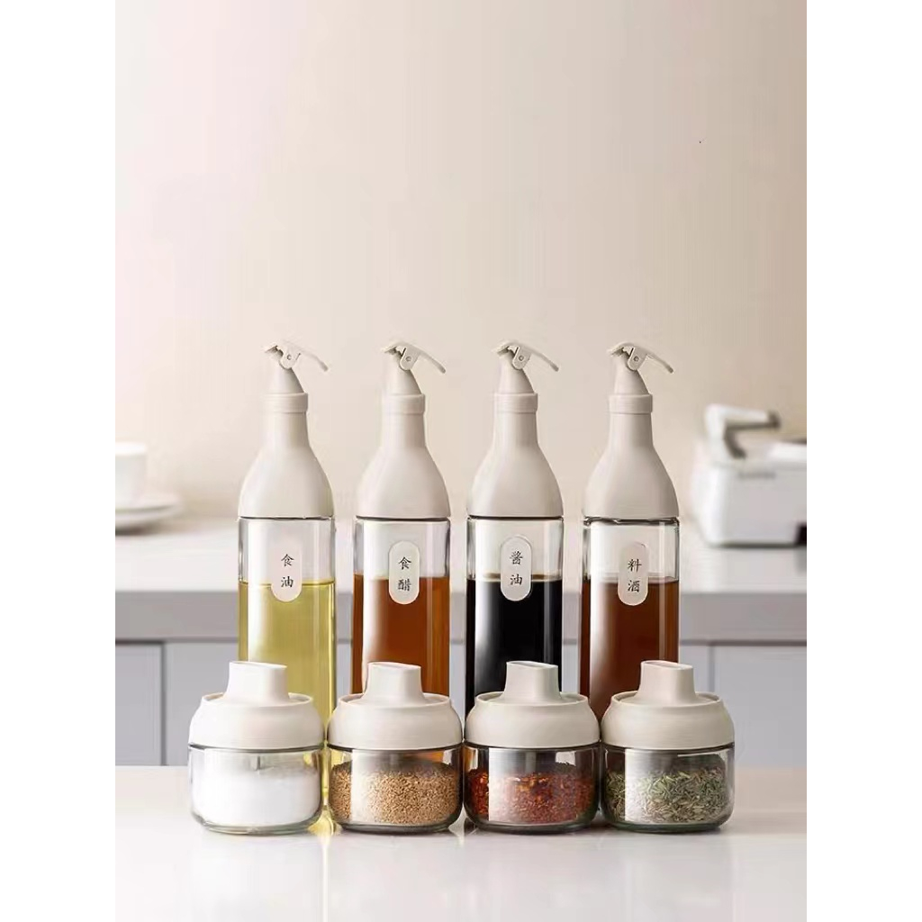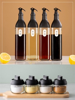 8pcs Seasoning Jar Oil Bottle Condiments Organizer Dispenser Bottle Food Storage Set