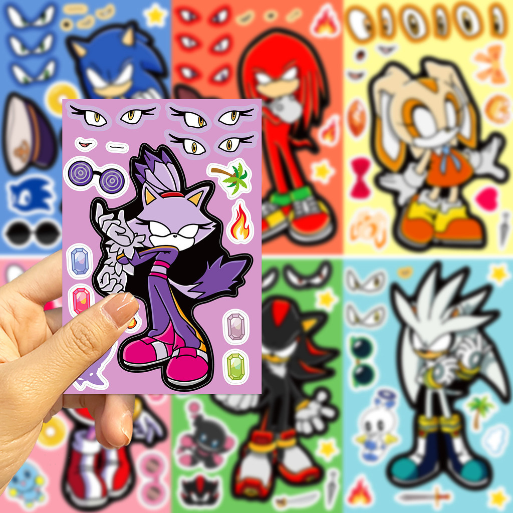 8sheets Hot Game Sonic The Hedgehog Make A Face DIY Stickers for Helmet Bicycle Hand Account Pencil Case Decals LanLanStickersWorld