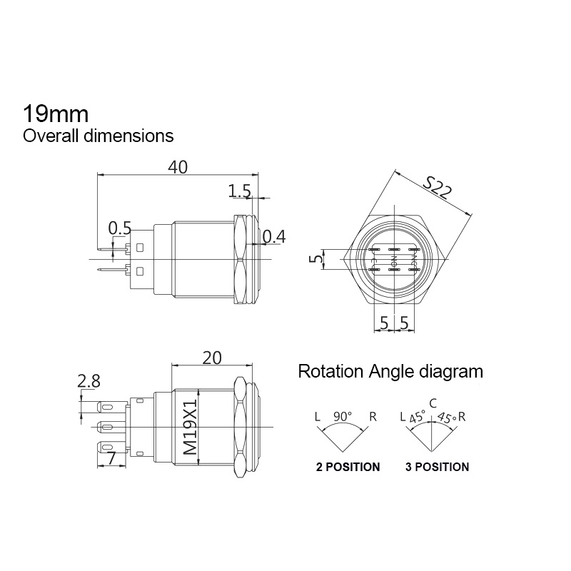 9-24V 19mm 22mm led metal rotary push button brass 2-3 position selector Switch Rotate button rotation knob metal switch