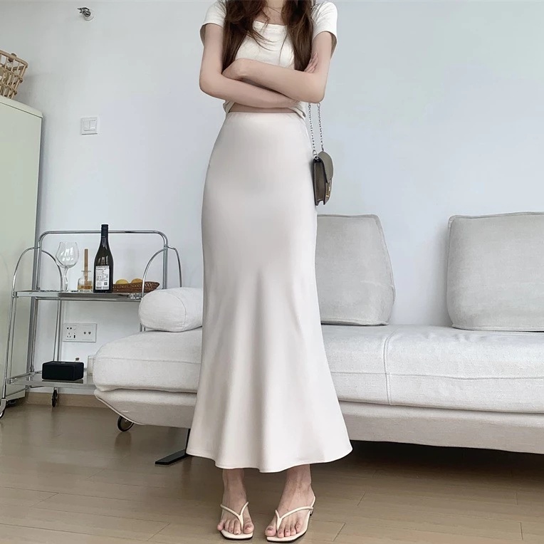 9 COLOR S-XL Korean Casual A-line Satin Palda Mermaid Wrap Long Skirt for Woman Highwaist No Slit