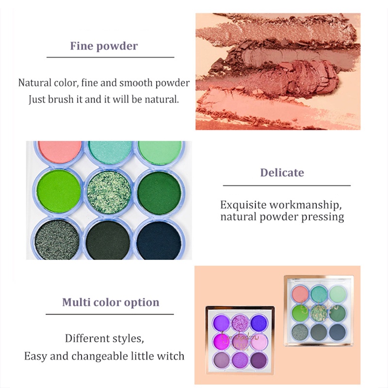 9 Colors Makeup Party Eyeshadow Pallete Shiny Purple Eye Shadow Palettes Brown Shimmer Glitter Matte Shades Neon Pigments