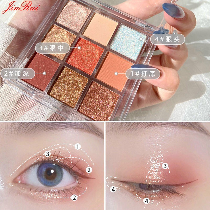9 Colours Matte Eyeshadow Shimmer Glitter Eye Shadow Powder Palette,Long Lasting Transparent Acrylic Eyeshadow Palette Pearly Matte Earth Color