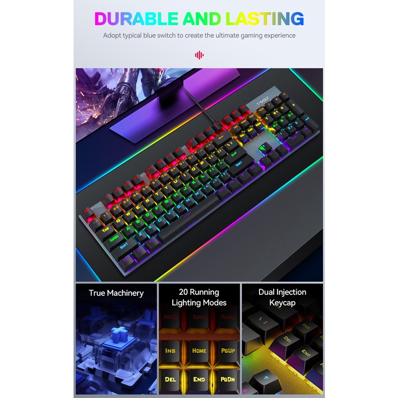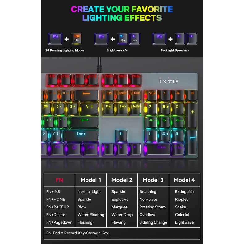 9 DIFFERENT BACKLIGHT MODE WIRED MECHANICAL KEYBOARD