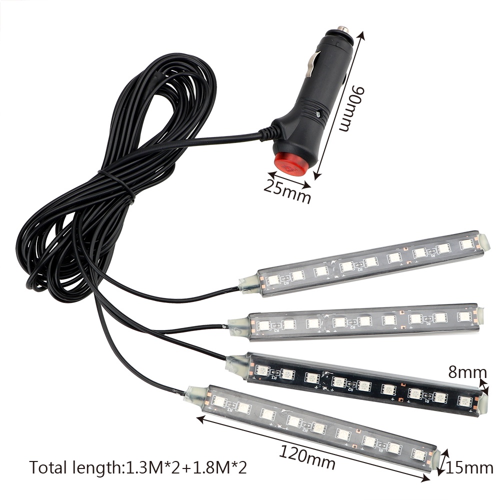 9 LED 4 In 1 Car Interior Atmosphere Lights Auto Decorative Lamp Cigarette Lighter Strip Lights